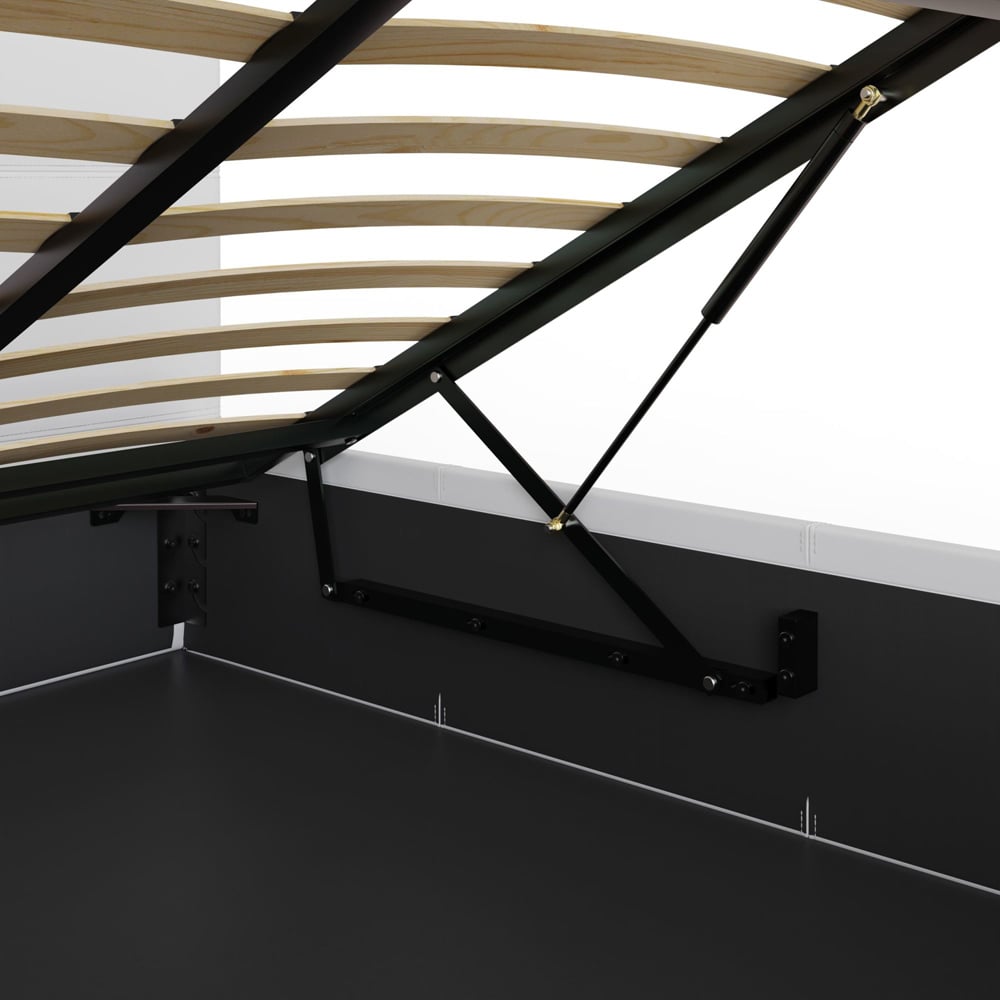 This GFW King White End Lift Ottoman Storage Bed offers an attractive combination of contemporary style and ample storage space. This beautifully crafted frame is finished in high quality faux leather and complemented by a simple yet stylish stitched headboard. It is an ideal solution if space is at a premium in your bedroom as the ottoman base provides generous storage space for linen, blankets, towels or clothes. The base lifts easily with the help of a gas hydraulic system so you can access the lined storage area underneath the bed. Size: 150cm.