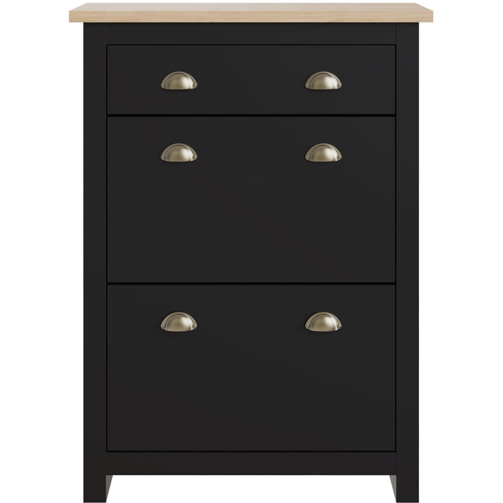 GFW Lancaster 2 Door 1 Drawer Black and Oak Shoe Cabinet