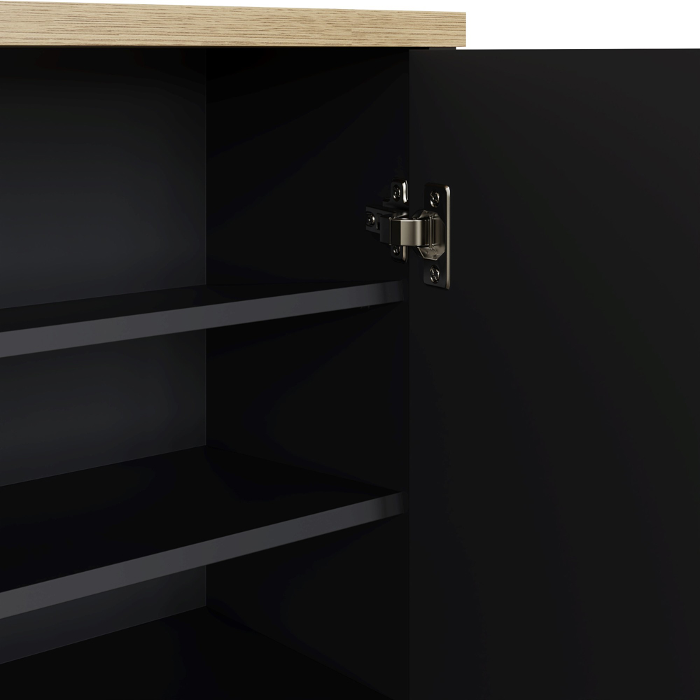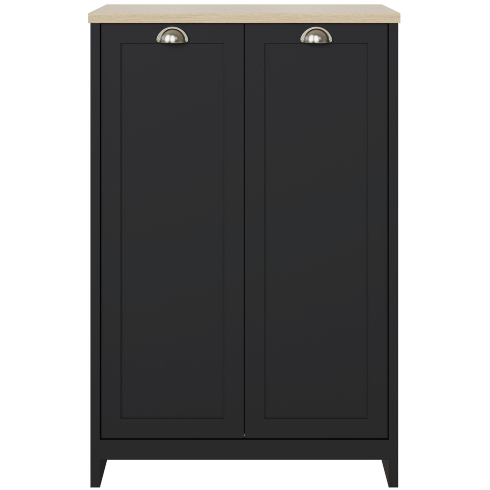 GFW Lancaster 2 Door Black and Oak Tall Shoe Cabinet
