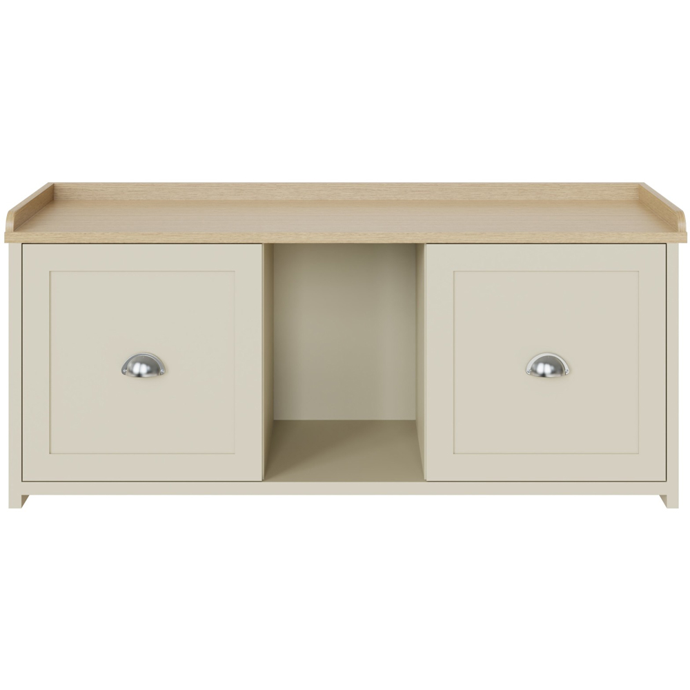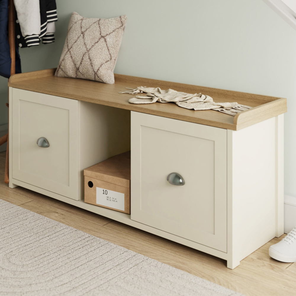 Shoes dumped in the hallway can be frustrating. With the Lancaster 2-Door shoe bench, this will be a thing of the past. This versatile shoe bench not only offers a practical seating area for changing shoes, it also features one open and two concealed storage areas. Finished in a choice of two colours, both with an Oak effect contrast top, the Lancaster 2-Door shoe bench will blend effortlessly with your home interior. Each cabinet contains two shelves, offering three levels of storage designed for shoes, which can also be positioned flat or at an angle. The middle, open, compartment offers storage for those larger shoes and is perfect for storage boxes too!