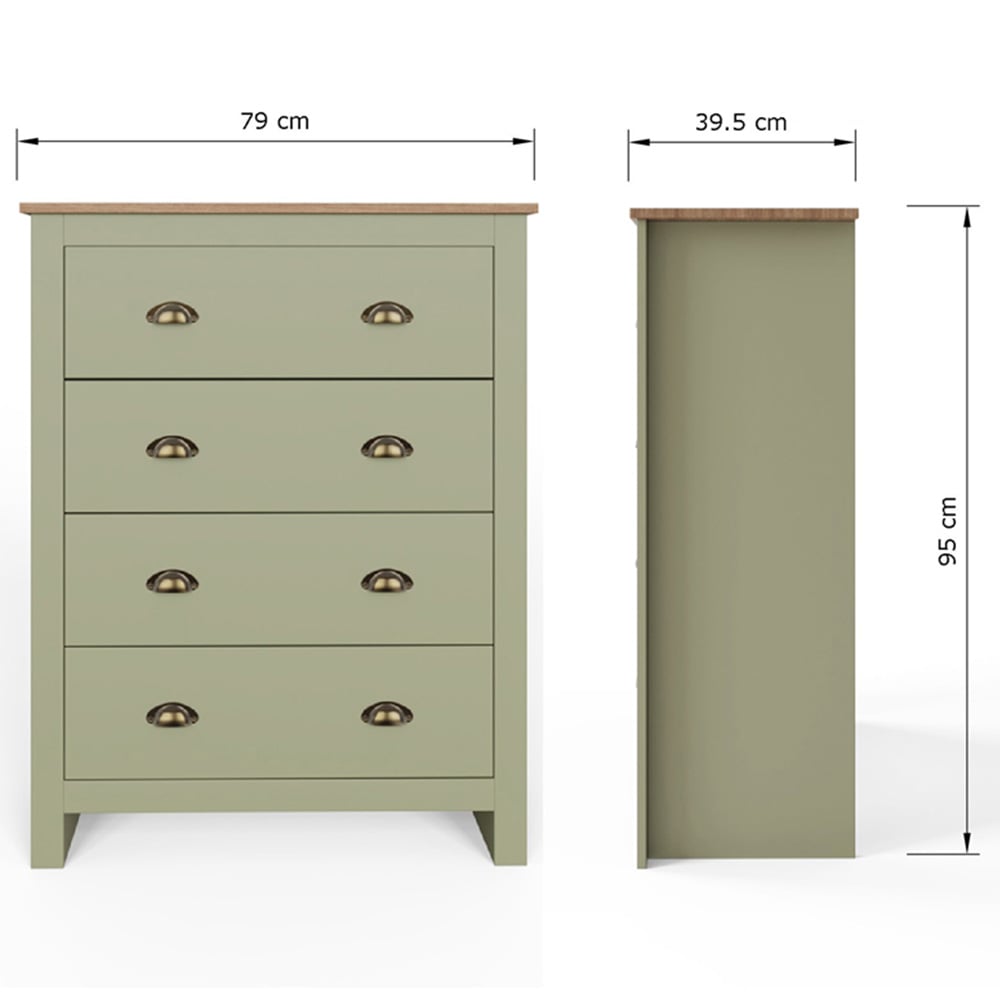 Add a touch of elegance to your bedroom with this GFW Lancaster Sage Green 3 Piece Bedroom Furniture Set. This stylish trio includes a wardrobe, a four-drawer chest, and a lamp table, all featuring a shaker-inspired design with sleek lines and a soft colour palette. The set combines a contrasting oak effect top with brushed steel handles, offering a perfect blend of country cottage styling and modern elegance. Plus, it provides ample storage and practical features.