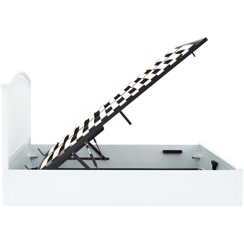 Make a stylish addition to any bedroom with the GFW Madrid King White Wooden Ottoman Storage Bed. It has a country artisan look and feel with its plank-and-panel-effect boxed base and tall, gently arched spindle headboard. The sprung mattress base can be easily lifted at the foot end to reveal a deep storage space that’s designed to accommodate quilts, cushions and extra bedding – or whatever needs to be stashed away out of sight. Dimensions: 211.5 x 165 x 114cm. Size: 150cm.