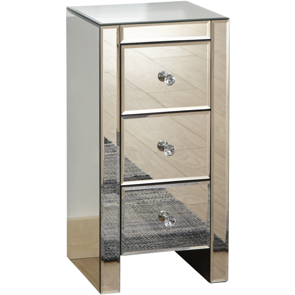 GFW 3 Drawer Clear Mirrored Slim Chest of Drawers