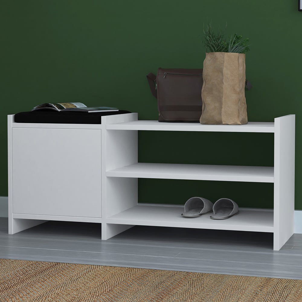Make a perfect addition to your hallway with this GFW Munslow White Shoe Storage Bench. Designed to fit comfortably in small spaces, this unit features a comfortable cushion for extra seating and comfort. With shoe storage for up to eight pairs, it helps keep your space organised and clutter-free. It is crafted from high-quality engineered wood with a protective melamine finish. It is easy to maintain and clean, simply by using a damp cloth, with no need for chemicals. The unit is also easy to assemble, coming with clear instructions for a quick and enjoyable setup.