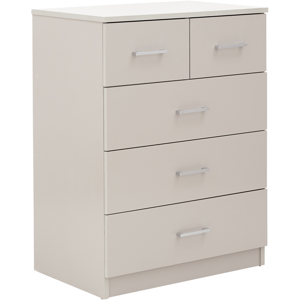 This GFW Panama 4 Piece Light Grey Bedroom Set is a great-value furniture pack with a sleek contemporary look and feel that’s just right for a modern interior. The simple, no-fuss design features clean lines and stylish satin handles. The set comprises a three-door wardrobe, five-drawer chest and a pair of lamp tables with shelf and drawer, providing a good mix of hanging and flat storage.