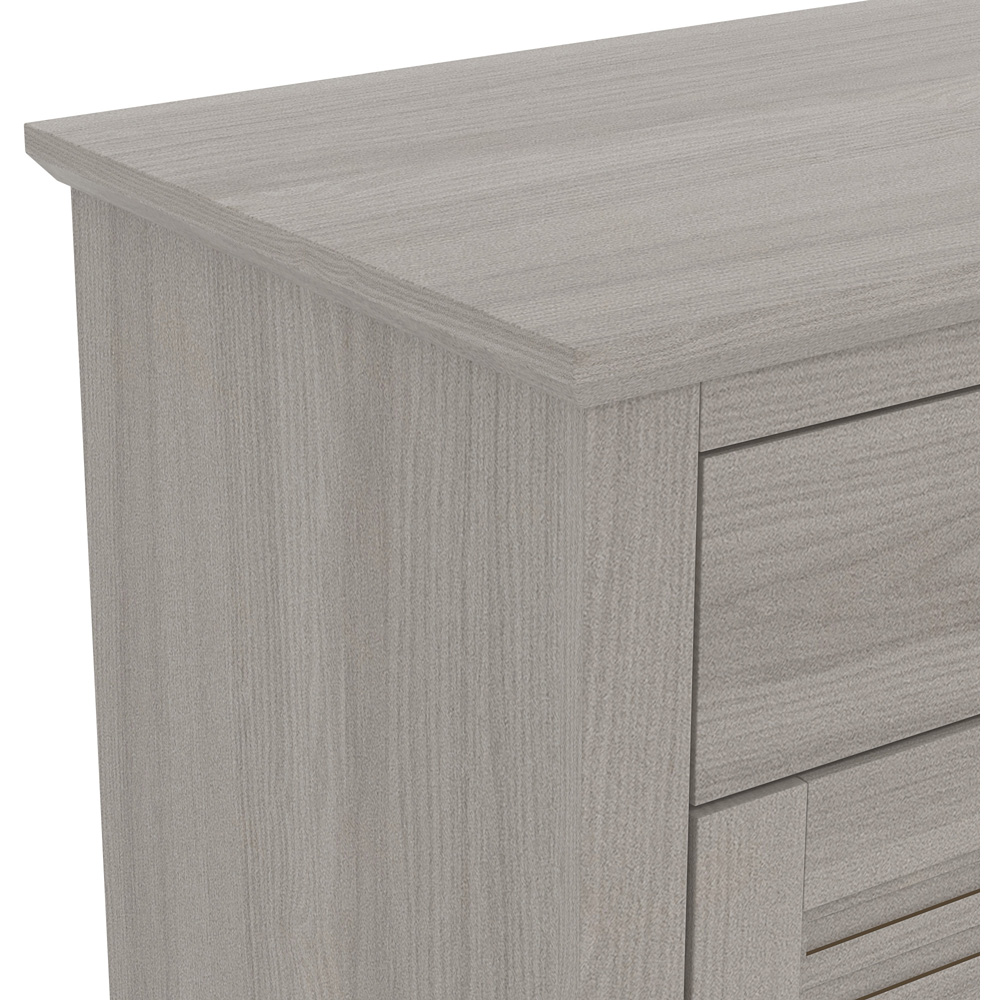 Make an ideal addition to any living area interior with the GFW Salcombe Warm Grey Oak Compact Sideboard. Boasting a sturdy base and a solid wood structure - this beautiful unit offers ample space for clothes, goods, and other items you wish to store. Whether placed in a bedroom or living area, this sideboard is an ideal choice, featuring a roomy drawer and a shelf to divide the cabinet space. The exquisitely grooved top panel provides enough room for your most cherished trinkets and decorative pieces. Whether used as a sideboard in the living room or a storage unit in the bedroom, this chest makes it incredibly convenient to grab items on the go. Additionally, it offers space for a lamp and a couple of plants, adding a splash of colour to your decor. With two doors and a single drawer - this sideboard is made of high-quality, long-lasting, and fashionable furniture that can seamlessly fit into any home or lifestyle. Its dimensions are H74.4 x W82.2 x D39.8cm.