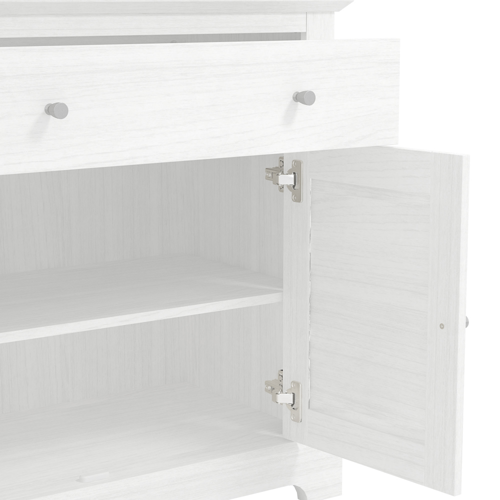 Make an ideal addition to any living area interior with the GFW Salcombe White Compact Sideboard. Boasting a sturdy base and a solid wood structure - this beautiful unit offers ample space for clothes, goods, and other items you wish to store. Whether placed in a bedroom or living area, this sideboard is an ideal choice, featuring a roomy drawer and a shelf to divide the cabinet space. The exquisitely grooved top panel provides enough room for your most cherished trinkets and decorative pieces. Whether used as a sideboard in the living room or a storage unit in the bedroom, this chest makes it incredibly convenient to grab items on the go. Additionally, it offers space for a lamp and a couple of plants, adding a splash of colour to your decor. With two doors and a single drawer - this sideboard is made of high-quality, long-lasting, and fashionable furniture that can seamlessly fit into any home or lifestyle. Its dimensions are H74.4 x W82.2 x D39.8cm.