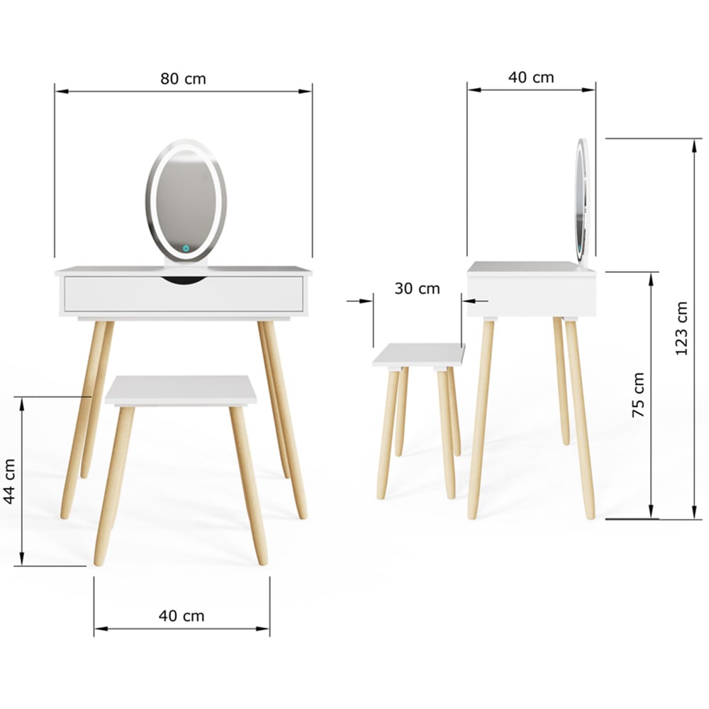 Transform your daily routine with the GFW Signy Single Drawer White Dressing Table Set with LED Mirror. Designed with a clean, white finish and modern appeal, this dressing table adds a touch of sophistication to any bedroom decor. The melamine finish not only provides a smooth, easy-to-clean surface but also enhances the table's durability. Made from sturdy pine, this table offers a robust structure that stands the test of time. The integrated LED mirror provides excellent lighting for your grooming needs. Perfect for organising your beauty essentials, it blends style and practicality seamlessly.