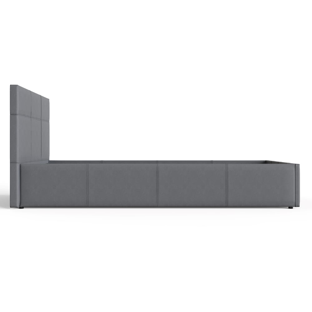This stunning side-lift ottoman bed offers an attractive combination of contemporary style and ample storage space. This beautifully crafted frame is finished in high-quality faux leather and complemented by a simple yet stylish stitched headboard. This is an ideal solution if space is at a premium in your bedroom, as the ottoman base provides generous storage space for linen, blankets, towels or clothes. For ease of use, this stylish ottoman has colour-coded holes that allow you to assemble the ottoman to lift up from the side of your choice. The base lifts easily with the help of a gas hydraulic system so you can access the lined storage area underneath the bed.