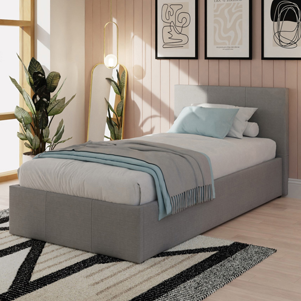 This stunning side-lift ottoman bed offers an attractive combination of contemporary style and ample storage space. This beautifully crafted frame is finished in high-quality hopsack fabric and complemented by a simple yet stylish stitched headboard. This is an ideal solution if space is at a premium in your bedroom as the ottoman base provides generous storage space for linen, blankets, towels or clothes. For ease of use, this stylish ottoman has colour-coded holes that allow you to assemble the ottoman to lift up from the side of your choice. The base lifts easily with the help of a gas hydraulic system so you can access the lined storage area underneath the bed.
