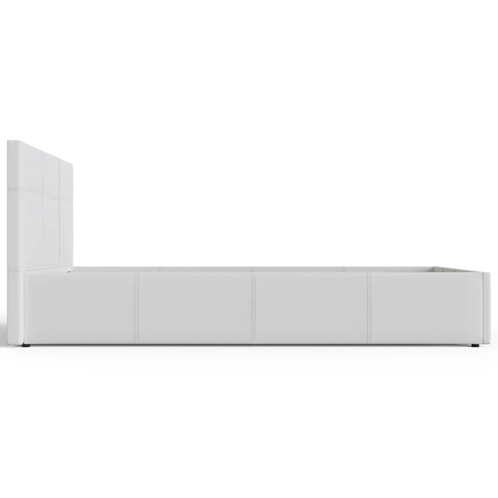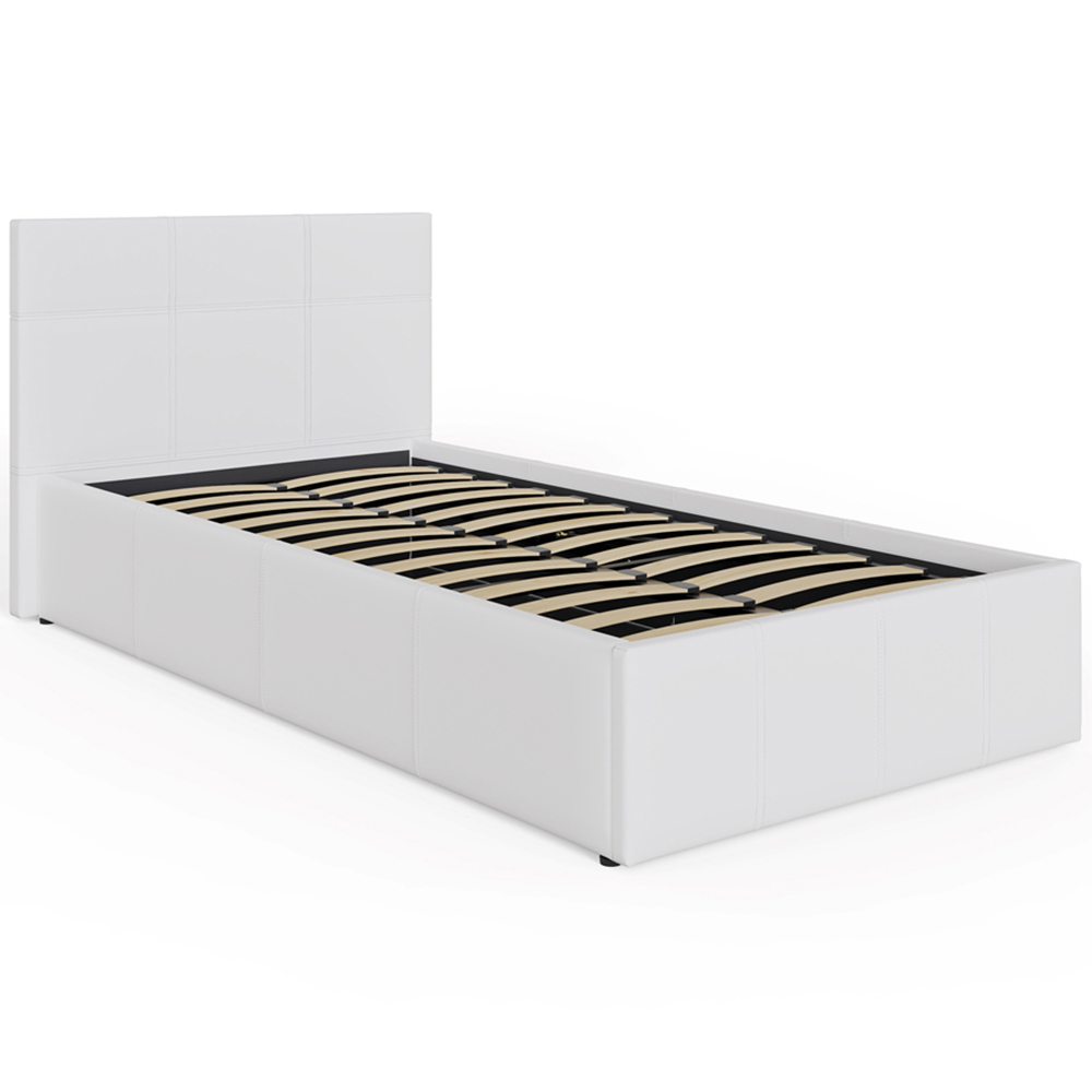 This stunning side-lift ottoman bed offers an attractive combination of contemporary style and ample storage space. This beautifully crafted frame is finished in high-quality faux leather and complemented by a simple yet stylish stitched headboard. This is an ideal solution if space is at a premium in your bedroom, as the ottoman base provides generous storage space for linen, blankets, towels or clothes. For ease of use, this stylish ottoman has colour-coded holes that allow you to assemble the ottoman to lift up from the side of your choice. The base lifts easily with the help of a gas hydraulic system so you can access the lined storage area underneath the bed.
