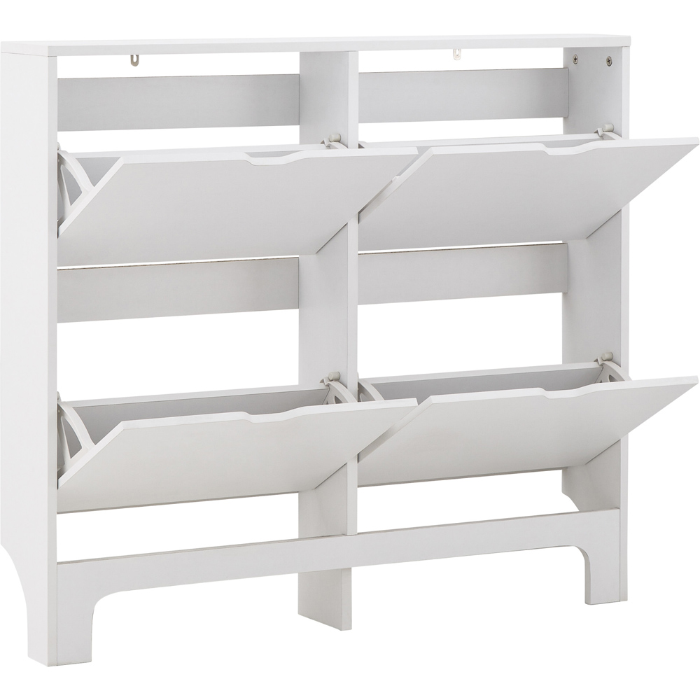 Give yourself the best chance of having a tidy hallway with this practical, yet stylish GFW White Narrow Shoe Cabinet. The unit’s slender profile makes it ideal for a narrow corridor, but you’ll find plenty of space within for storing shoes, sandals and trainers, keeping them out of sight and off the floor. The cabinet’s chic matt painted frame is accentuated by four pull-down compartments – each providing storage for two pairs of standard size men’s shoes (eight pairs in all). The profiled plinth arcs over the skirting board, allowing for a close fit to the wall. Dimensions: 17 x 102 x 90cm.