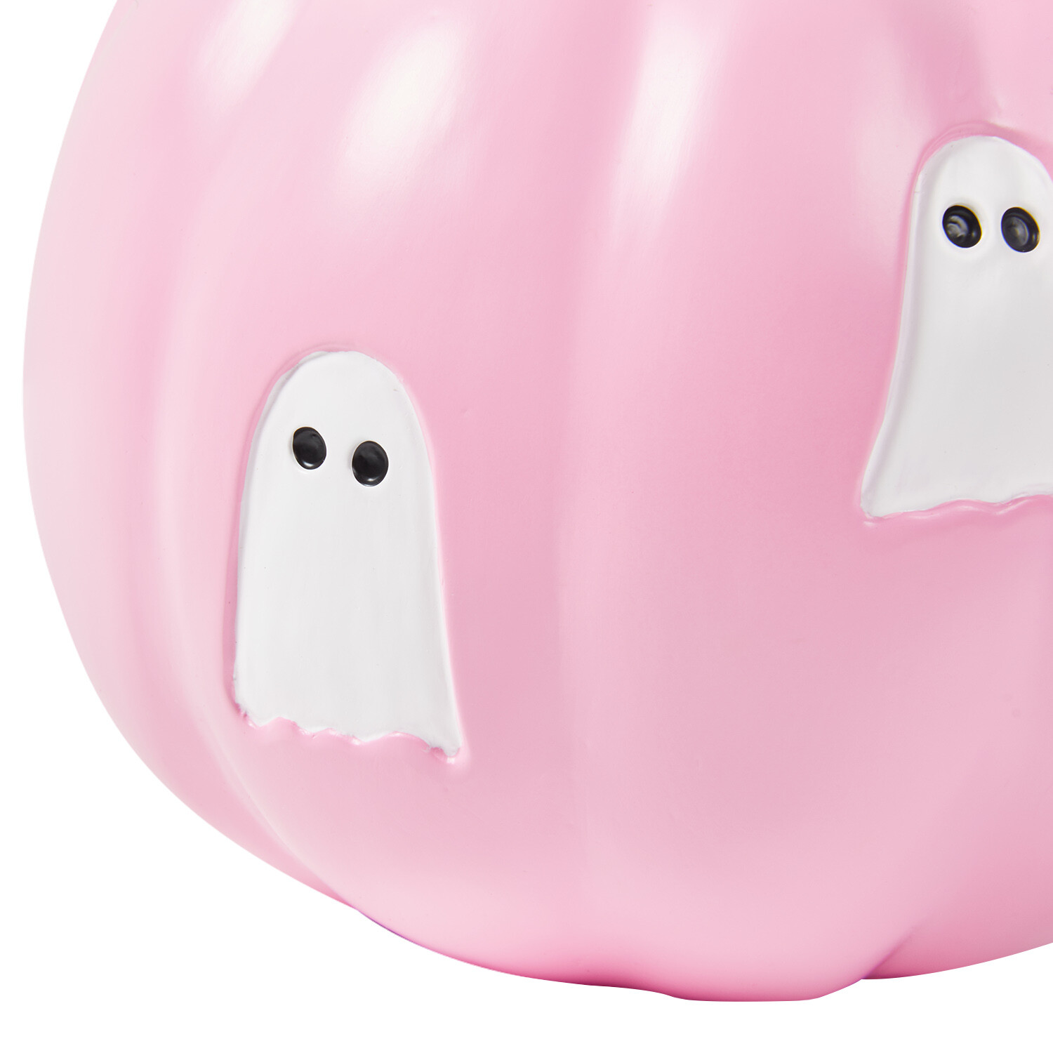 Add a fun, spooky vibe to your Halloween decorations with the adorable Ghost Pumpkin Ornament. This pumpkin is uniquely adorned with a cute ghost design. Perfect for adding a playful touch to your festive setup, it is sure to bring a smile to everyone's face.