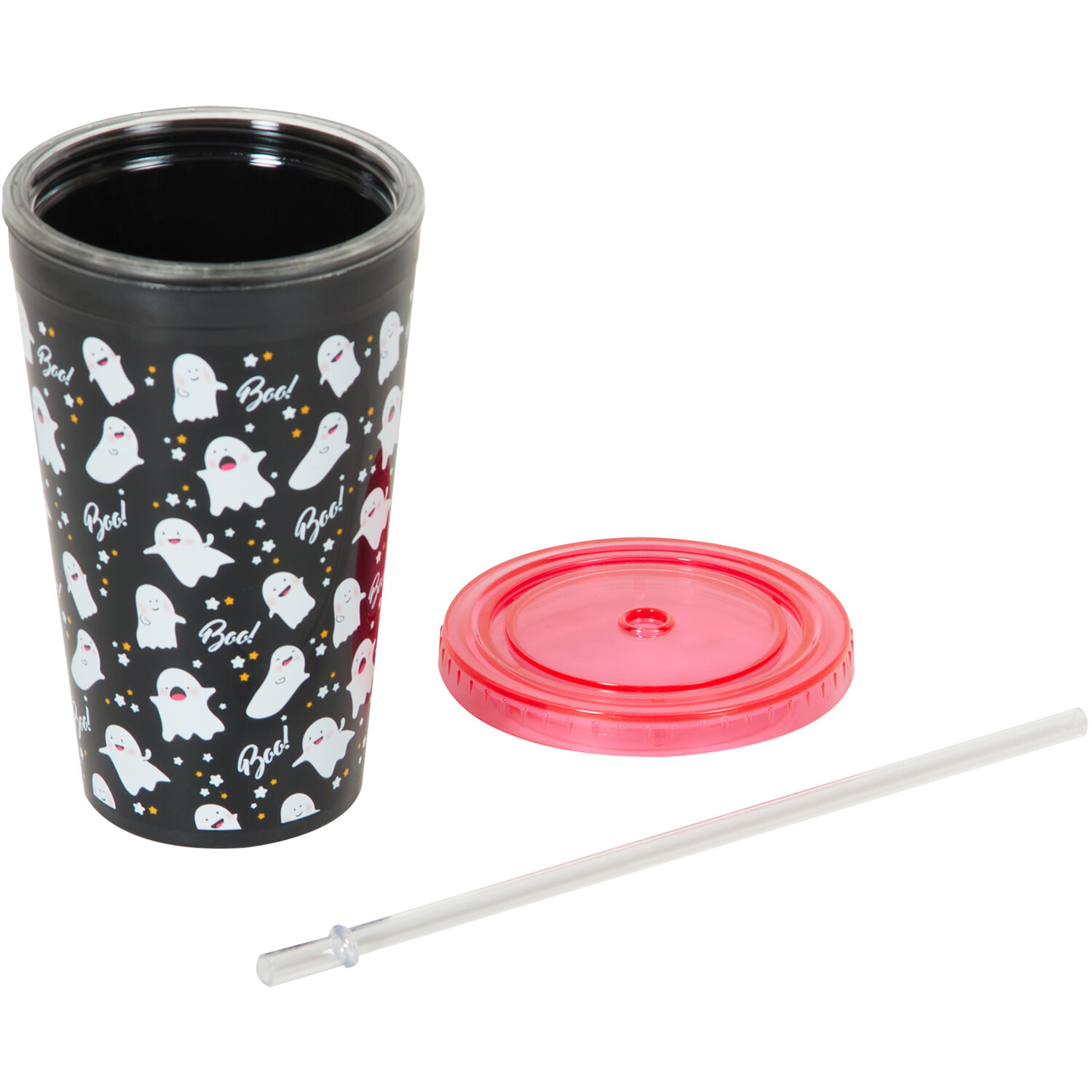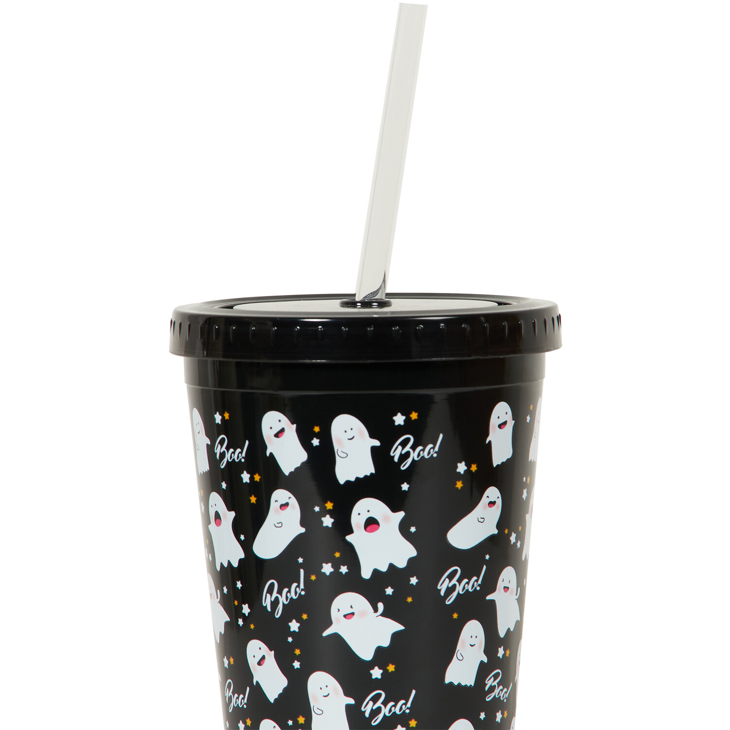 Give a spooky yet fun touch to your daily routine with the Ghost Tumbler with Straw 480ml. Designed especially for cold drinks, this tumbler features a screw on lid as well as a reusable straw to reduce spillage. It's adorned with an adorable ghost design to give it an eerie touch and is available in an assortment of styles you'll love. Fill this tumbler up with your favourite cold drink to indulge in a chilling Halloween experience.