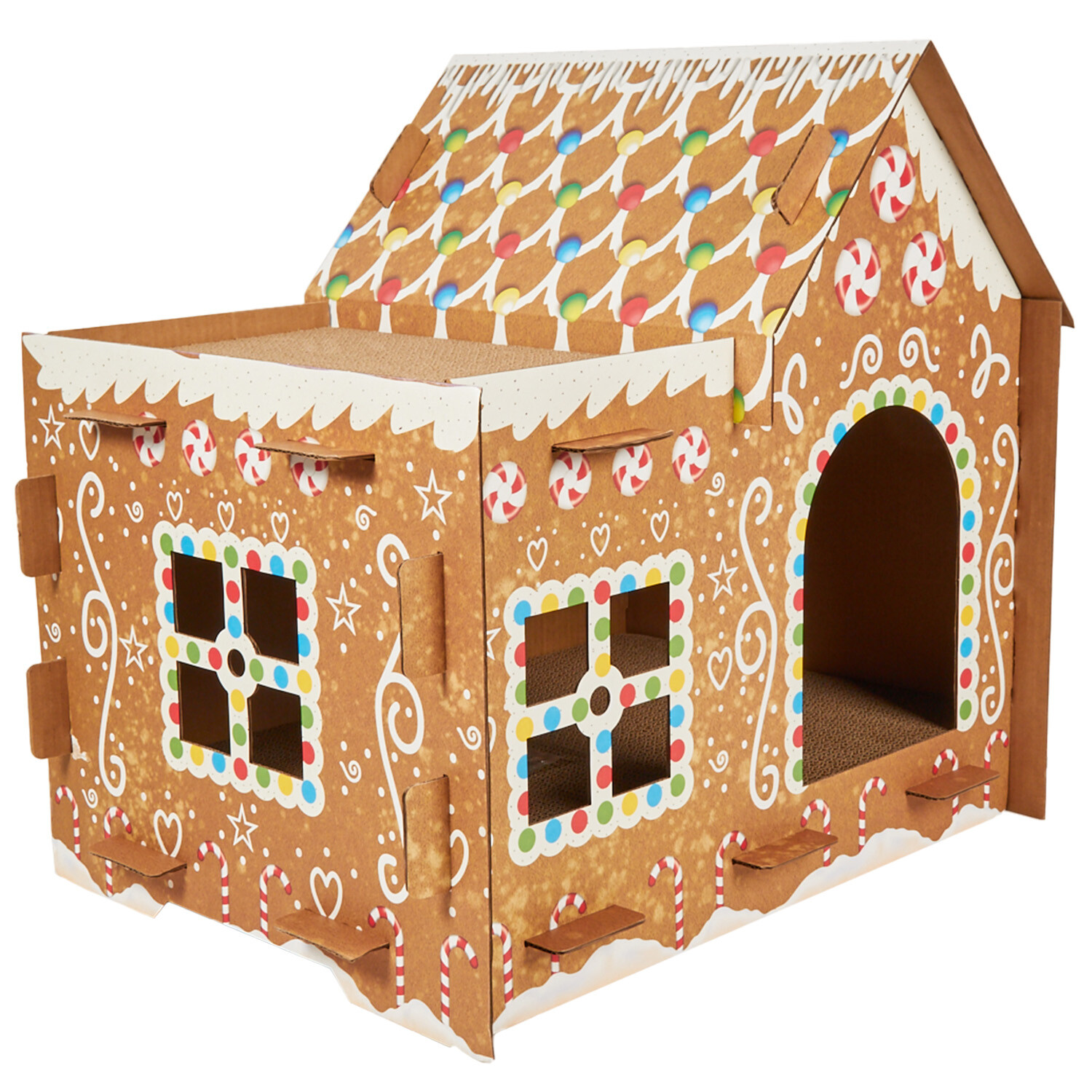 Pamper your little furball with the Gingerbread Cat Scratcher House. Perfect for satisfying your cat's natural scratching urge, this house is ideal for any home with felines. It's designed to resemble a gingerbread house and is further adorned with colourful details, making a perfect Christmas gift for your beloved kitty.