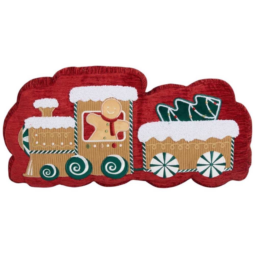 Add whimsy to your festive decor with this Gingerbread Train Cushion. Crafted in the shape of a holiday train, it features delightful gingerbread detailing, candy-inspired wheels and frosted accents for a sweet seasonal look. With its playful design and plush finish, this cushion adds warmth and comfort to any Christmas setup.