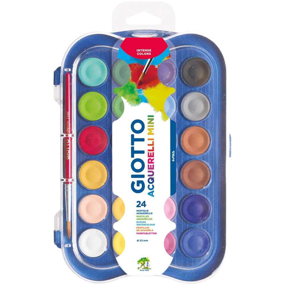 Perfect for any budding artist looking to bring a splash of colour to any marvellous masterpiece, the Giotto Mini Watercolour Paint Set is sure to come in handy. Complete with a durable synthetic brush, this desirable painting accessory is designed to inspire creativity. Showcasing a number of vibrantly coloured tones and hues, this compact art set is suitable for use at home, work, school, and even whilst on the go.