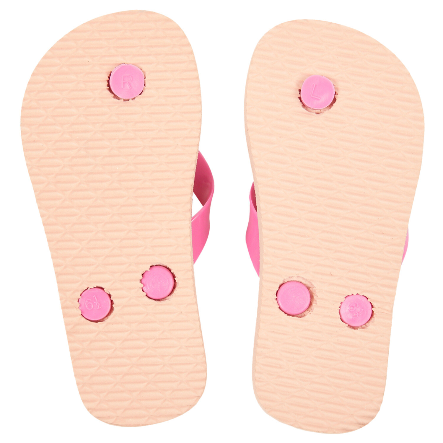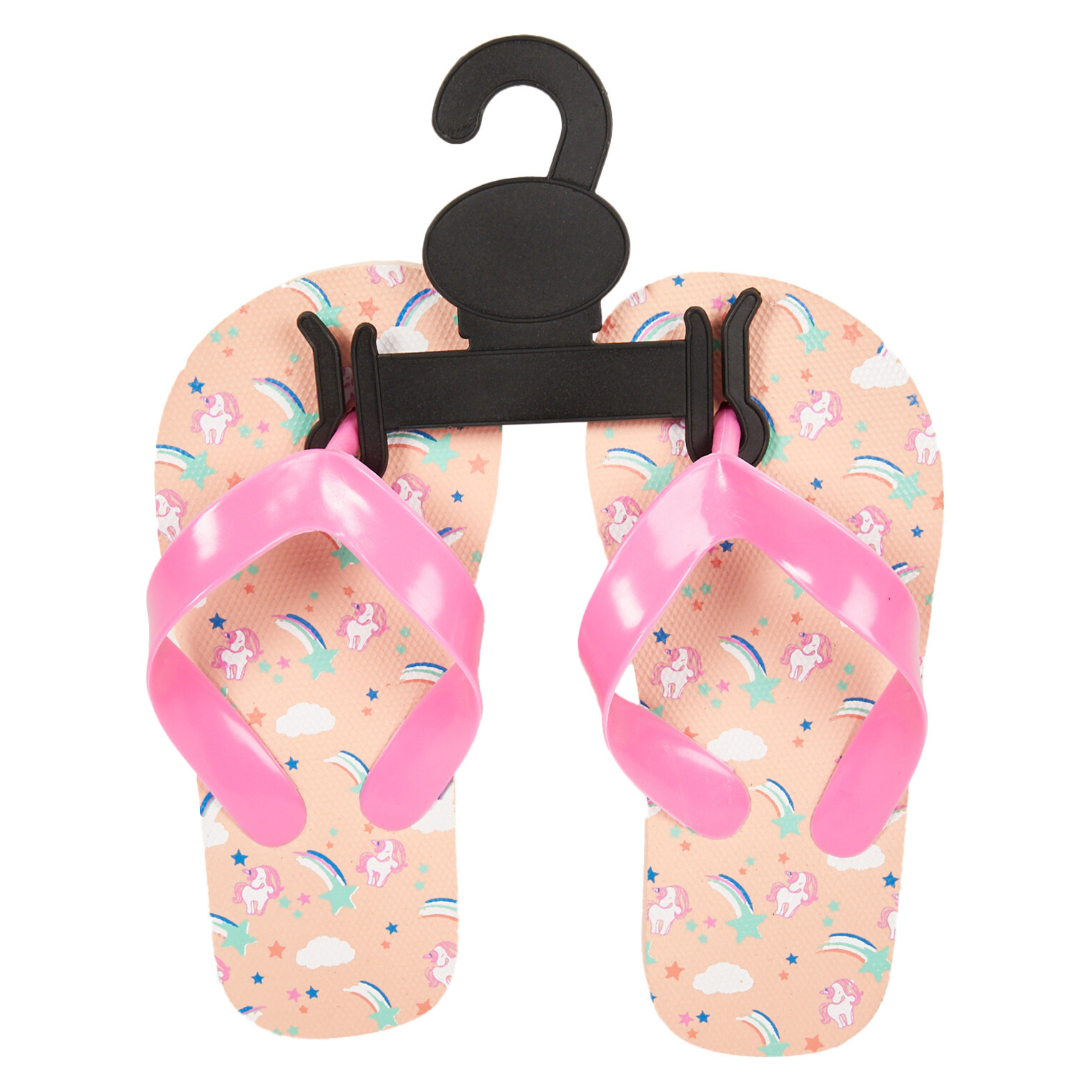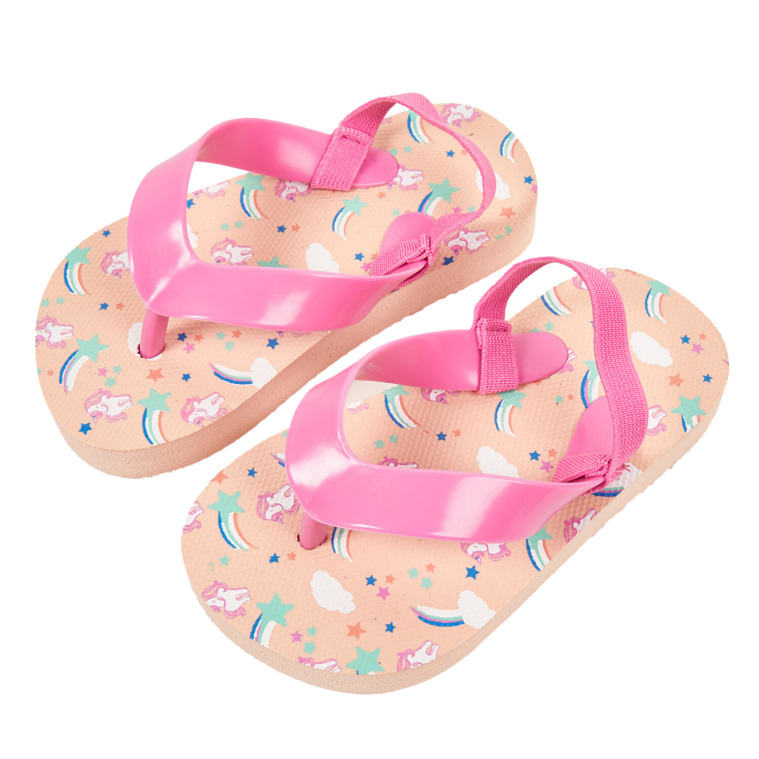 Walk on the beach, lounge on the poolside or stroll around town in style with these Girls Flip Flops. Featuring a fun rainbow design in pink, they are a choice to keep your feet comfortable and stylish during the sunny season. These slippers are designed with a soft and cushioned footbed that offers all-day comfort, while their textured rubber sole provides excellent grip and stability. The between-the-toe straps offer a secure fit, so you can walk with confidence and ease. Crafted to withstand the elements and provide long-lasting comfort, they are perfect for enjoying your summer adventures to the fullest.