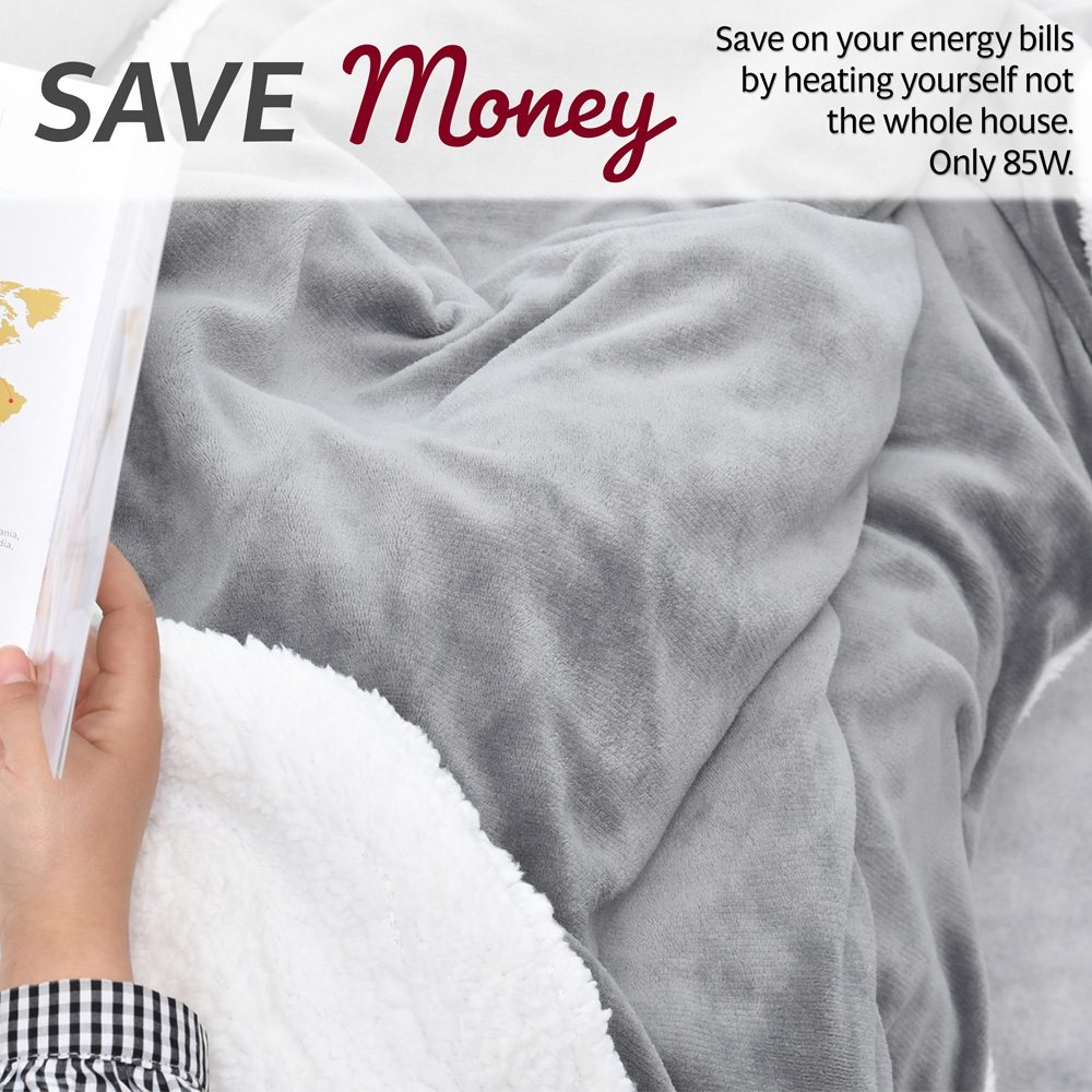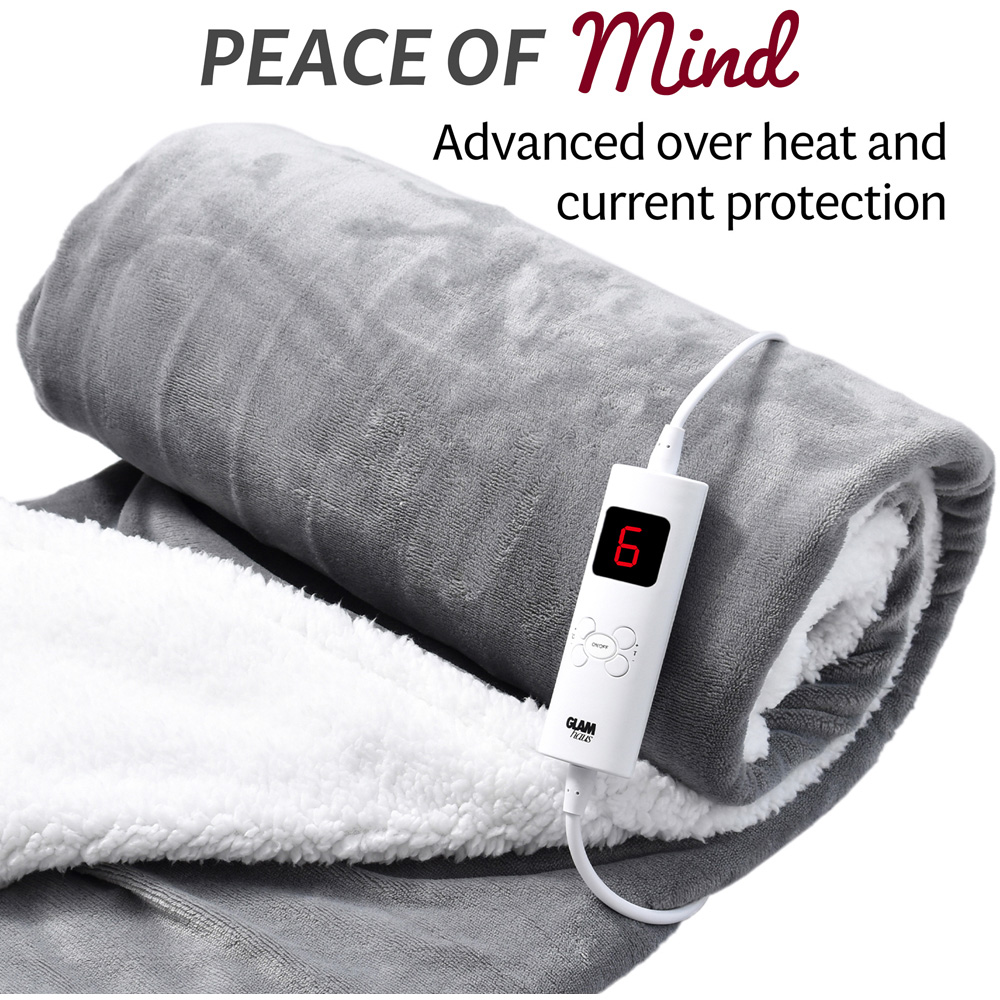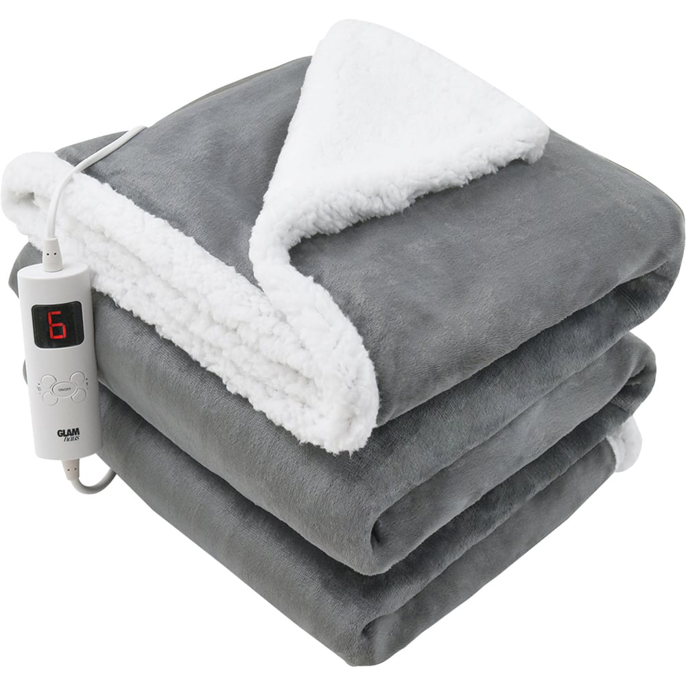 Keep yourself warm with this GlamHaus Electric Throw. This blanket comes with a thick, plush fabric that makes it cosy even before heating it up. If you want extra warmth, simply choose a heat setting and it’ll warm up quickly and evenly. Its advanced heating elements spread warmth over almost the whole surface area of the throw, keeping you comfortable all the time. The heating elements blend with the thick fabric to retain heat for efficient performance. Measuring 160 x 130cm, the dimensions are more than generous enough for you and a partner to lay over a double bed. Get your temperature just right at the push of a button and select one of 6 cosy heat settings. You can also select one of 3 hourly timer settings to automatically shut your blanket down at some point through the night. Easy to use, get your blanket working just the way you like it with the user-friendly controller and clear digital display. Each throw is tested to meet the highest safety and quality settings. They come with both overheating and overcurrent protection for complete peace of mind.