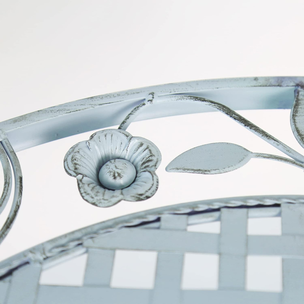 Add charm to your outdoor space with the GlamHaus Turin 2 Seater Bistro Set Antique Blue. Crafted using solid iron, the set features an intricate and detailed design. The set is robust enough to last for years. With beautifully designed backrests and tabletop, this 3-piece furniture set is sure to complement your outdoor space and give you a seat to relax on during those warm spring and summer days. This bistro set requires minimal assembly so that it can be set up easily. Dimensions: Chair: 39.50 x 94cm and Table: 70 x 70 x 75cm. Protect your garden furniture with our durable and waterproof covers. Explore our wide range of heavy-duty Garden Furniture covers to find the perfect fit for your needs.