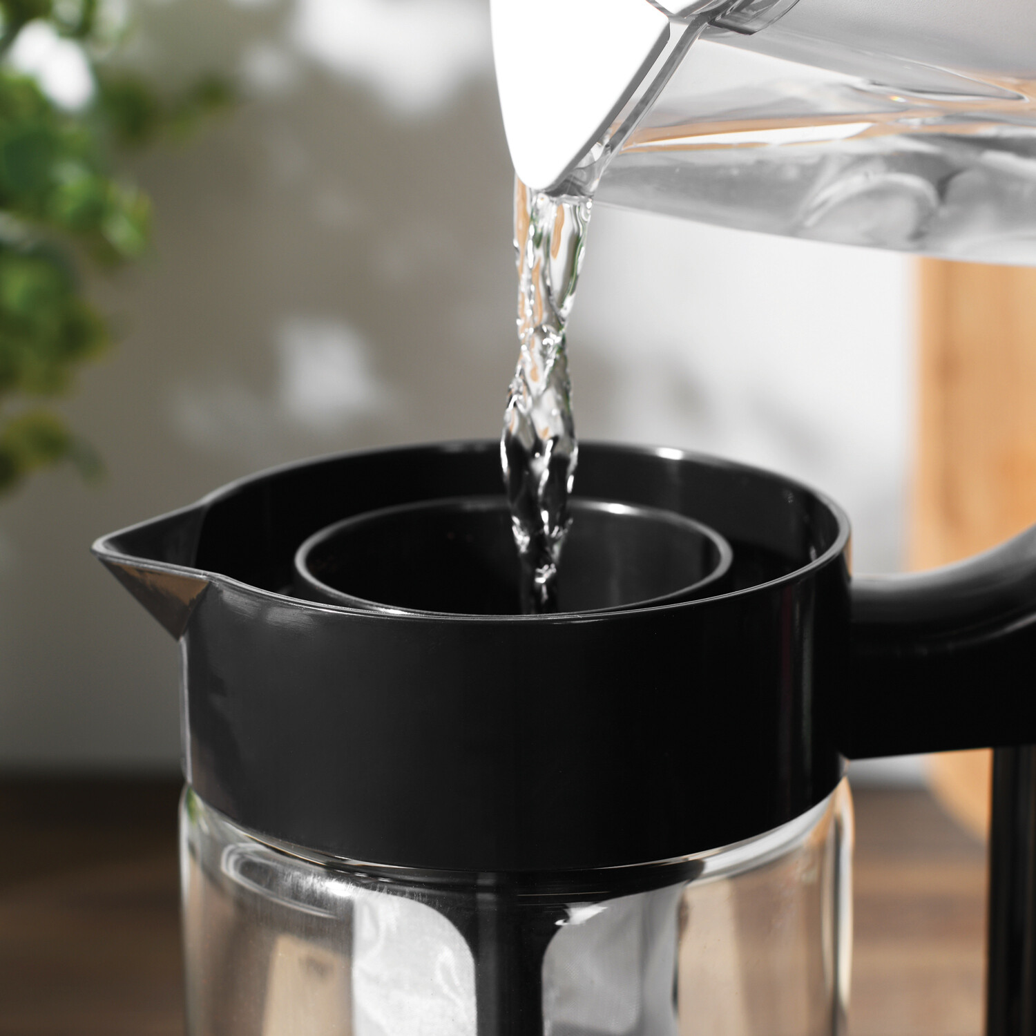 Enjoy refreshing coffee with the Glass Cold Brew Coffee Maker 1.3L. Its classic structure not only enhances your kitchen's aesthetic but also makes it incredibly simple to operate. This coffee maker features a generous 1.3-litre capacity, ensuring you have plenty of refreshing cold brew to enjoy or share. Stylish and practical, it's an essential addition to any coffee enthusiast's kitchen.