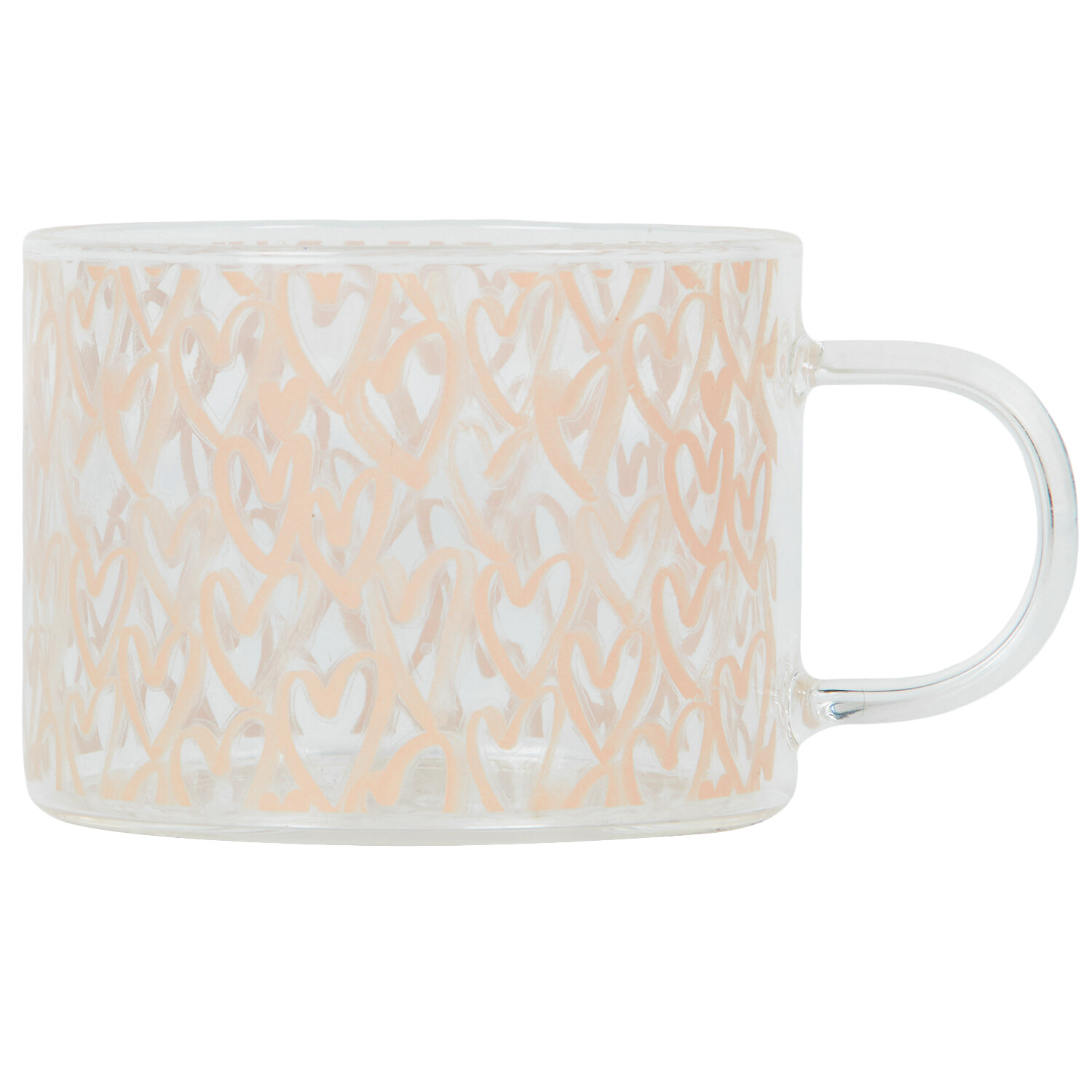 Glass Heart Decal Mug 500ml - Clear and Pink