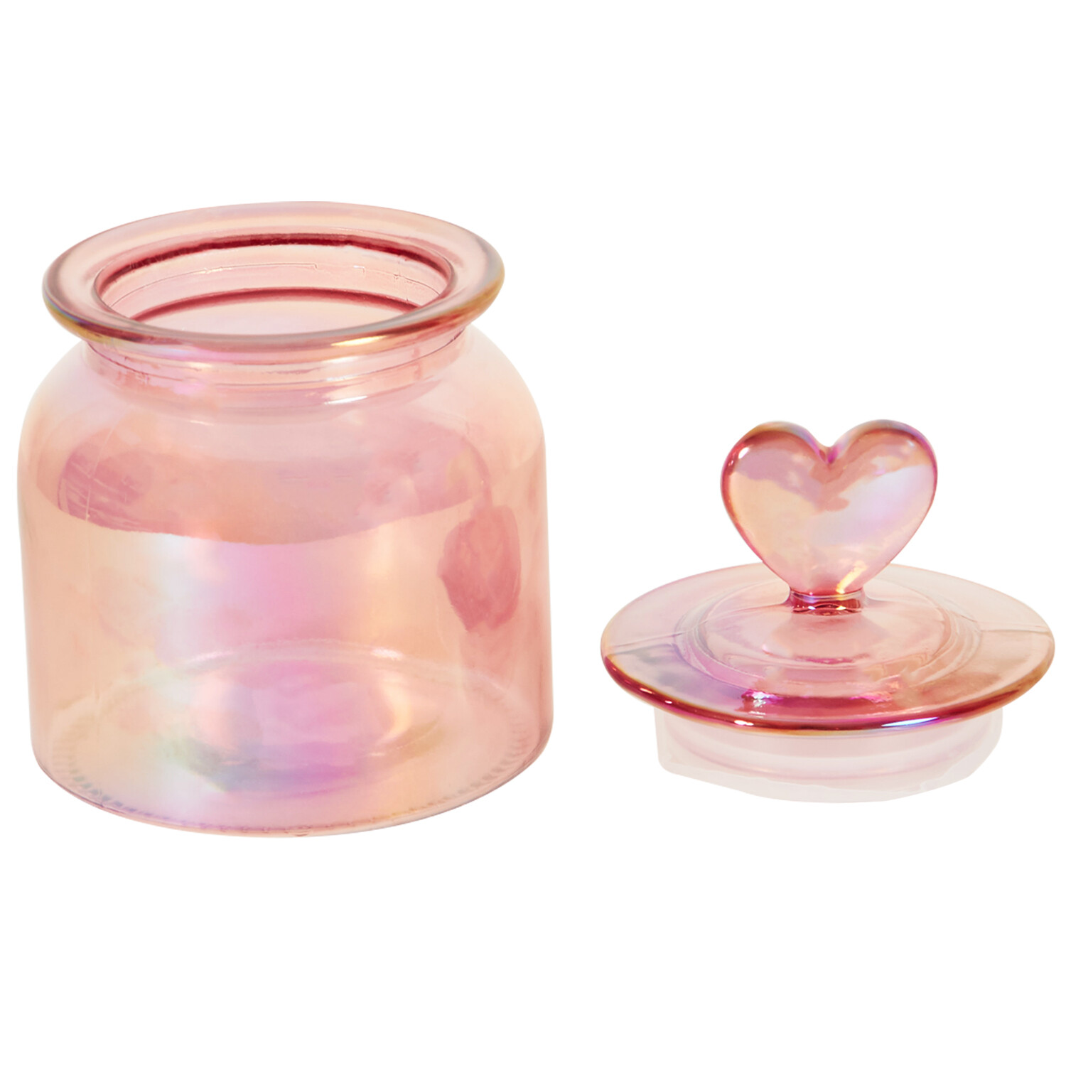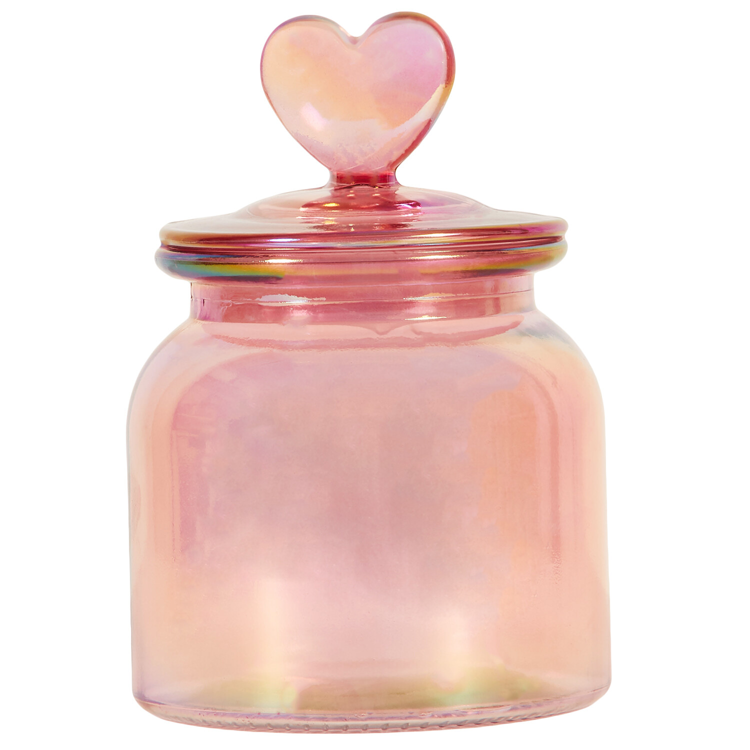 Revamp boring kitchen worktops with the Glass Lustre Coating Heart Lid Jar. Stylish and eye-catching, this jar is crafted from glass and wears a lustre coating that gives it an alluring iridescent display to enhance your decor instantly. Enclosed with a lid featuring a charming heart handle, it's perfect for storing and keeping cooking or other staples within easy reach.