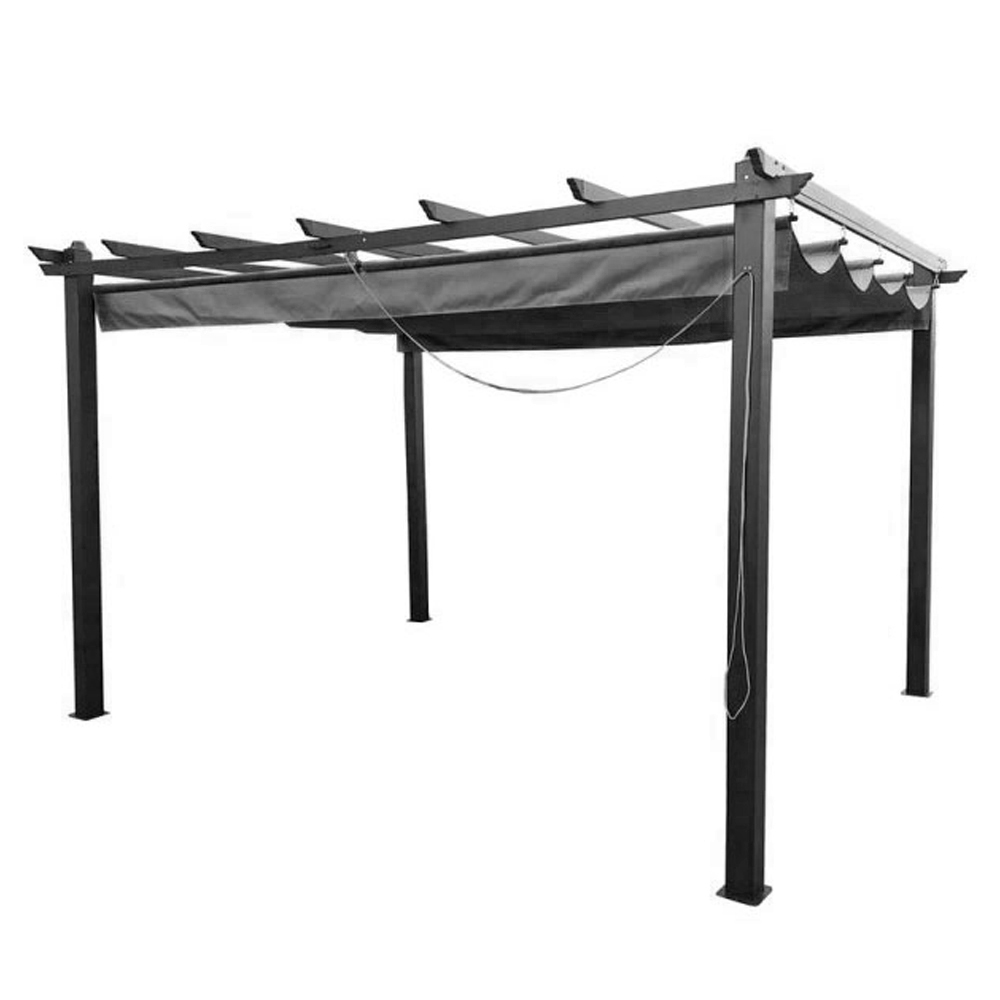 Go for a gorgeous pergola-style shelter structure with this Glendale Seville Grey Garden Gazebo. Features a strong aluminium black frame with powder-coated steel feet and canopy rods that supports an innovative retractable polyester canopy. The showerproof canopy is fixed to an easy glide mechanism, which enables forwards or backward movement, and once opened, it is held in place with a magnet. The large fixing plates enable this versatile unit to be a permanent fixture in your garden and give the shade to enjoy your garden to its fullest. Whether it's for a garden party, BBQ, or to simply sit and relax, this gazebo will look effortlessly elegant and stand strong all year round in your garden once secured into the ground or decked with the pre-drilled fixing plates. Remove the roof cover and curtains when not in use in the winter to extend their lifetime and prevent damage in adverse weather conditions. Home assembly is required. Size: 3 x 3m.