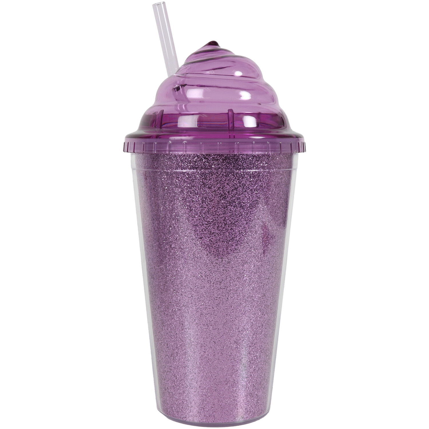 The Glitter Ice Cream 480ml Tumbler is a unique and stylish way to stay hydrated. The tumbler has a cool, unique ice cream-themed design in two colours: shimmering silver or sparkly purple. It comes with a coordinating lid which looks like a scoop of ice cream and a straw to help reduce spillages. It's perfect for home, work, and on the go.