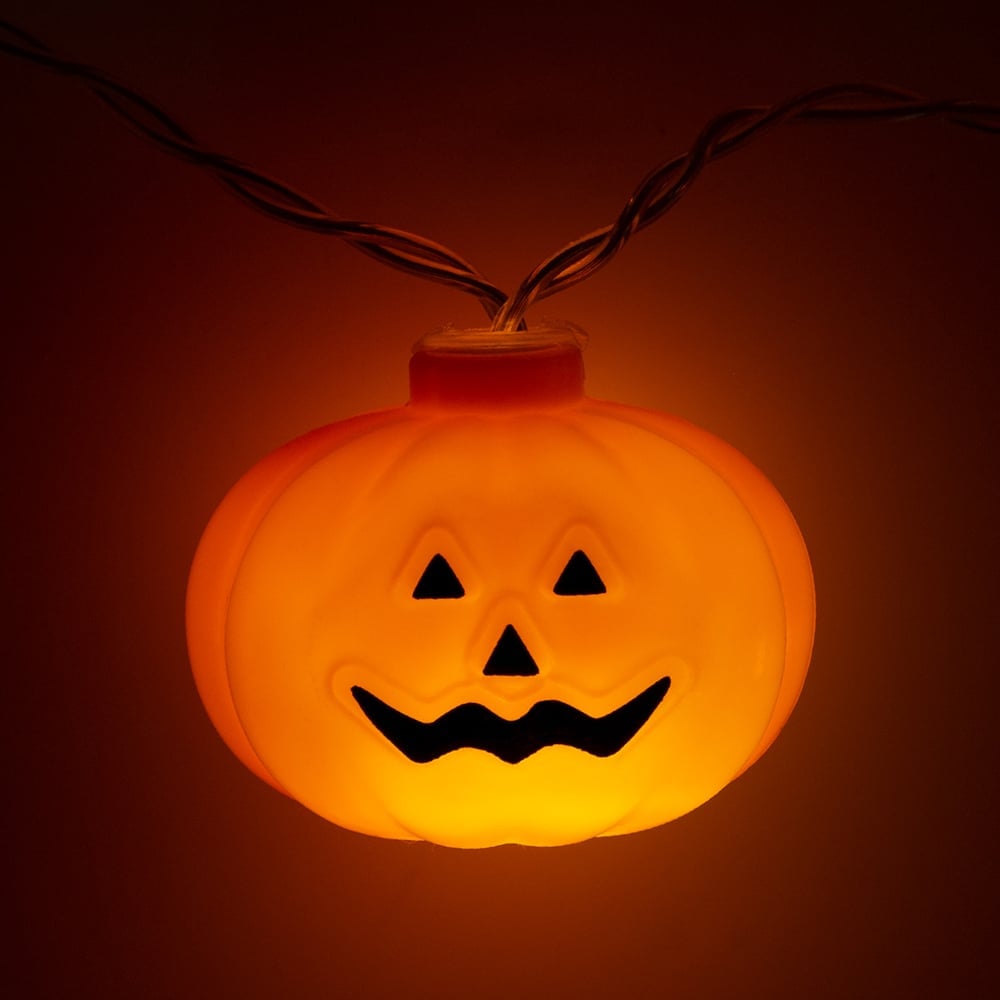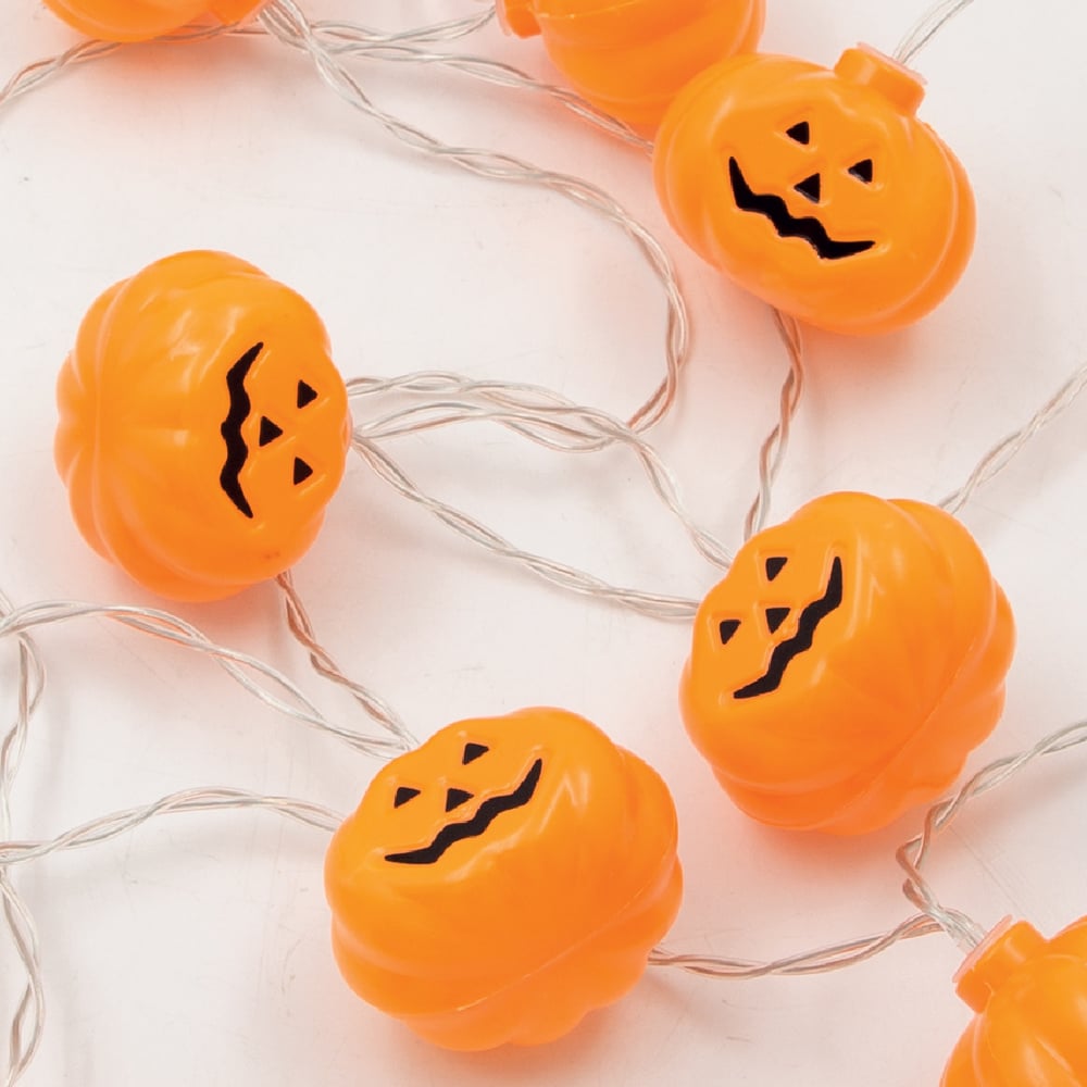 Elevate your Halloween decor with the Global Gizmos Pumpkin String Lights. This set includes ten pumpkin lights, each containing a warm white LED bulb that enhances the traditional orange Halloween glow. You can choose between steady glowing or flashing modes for a dynamic display. These lights are suitable for both indoor and outdoor use, as they have an IP44 waterproof certification. They are powered by a battery box that requires two AA batteries (not included). The compact design of the lights features pumpkins measuring H4.5 x W3.5 x D3.5cm, with 15cm of space between each bulb. This design allows for easy storage and versatile display options before and after Halloween.