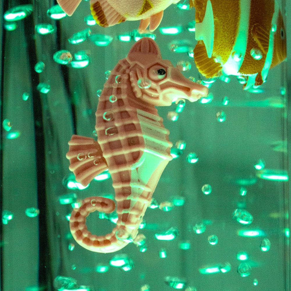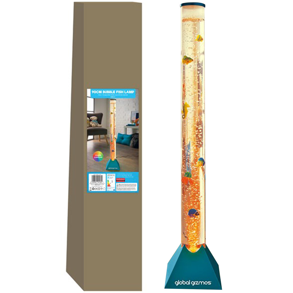 Add a touch of underwater magic to your space with the Global Gizmos Blue Fish Water Bubble Lamp 90cm. This striking aquarium-style lamp combines calming bubbles, the soothing hum of the bubble motor and vibrant LED lights that transition through seven mesmerising colours, creating a soothing sensory experience. With a mix of tropical fish, jellyfish and seahorses floating inside, this lamp captures the enchantment of a real aquarium. Ideal as a focal point for any room, its generous lead wire allows for flexible placement without visible cords, adding both charm and functionality to decor.