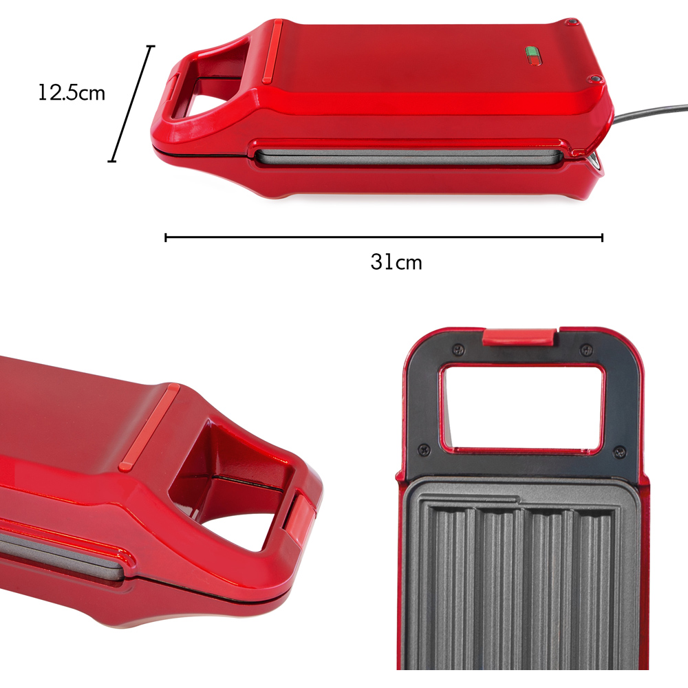 Bring the joy of fresh, hot churros to your kitchen with the Global Gizmos Red 31cm Churros Maker with Piping Bag. With a built-in thermostat, it ensures churros are baked at the perfect temperature every time, while the flip feature allows for even batter distribution. Measuring 31cm x 12.5cm with an included easy-clean piping bag, it allows for hassle-free preparation. Non-stick cooking plates make cleanup a breeze, while rubber feet keep the machine stable during use. For added safety, the cool-to-touch handle means no accidental burns, so you can cook with ease and confidence.