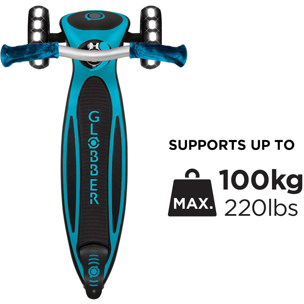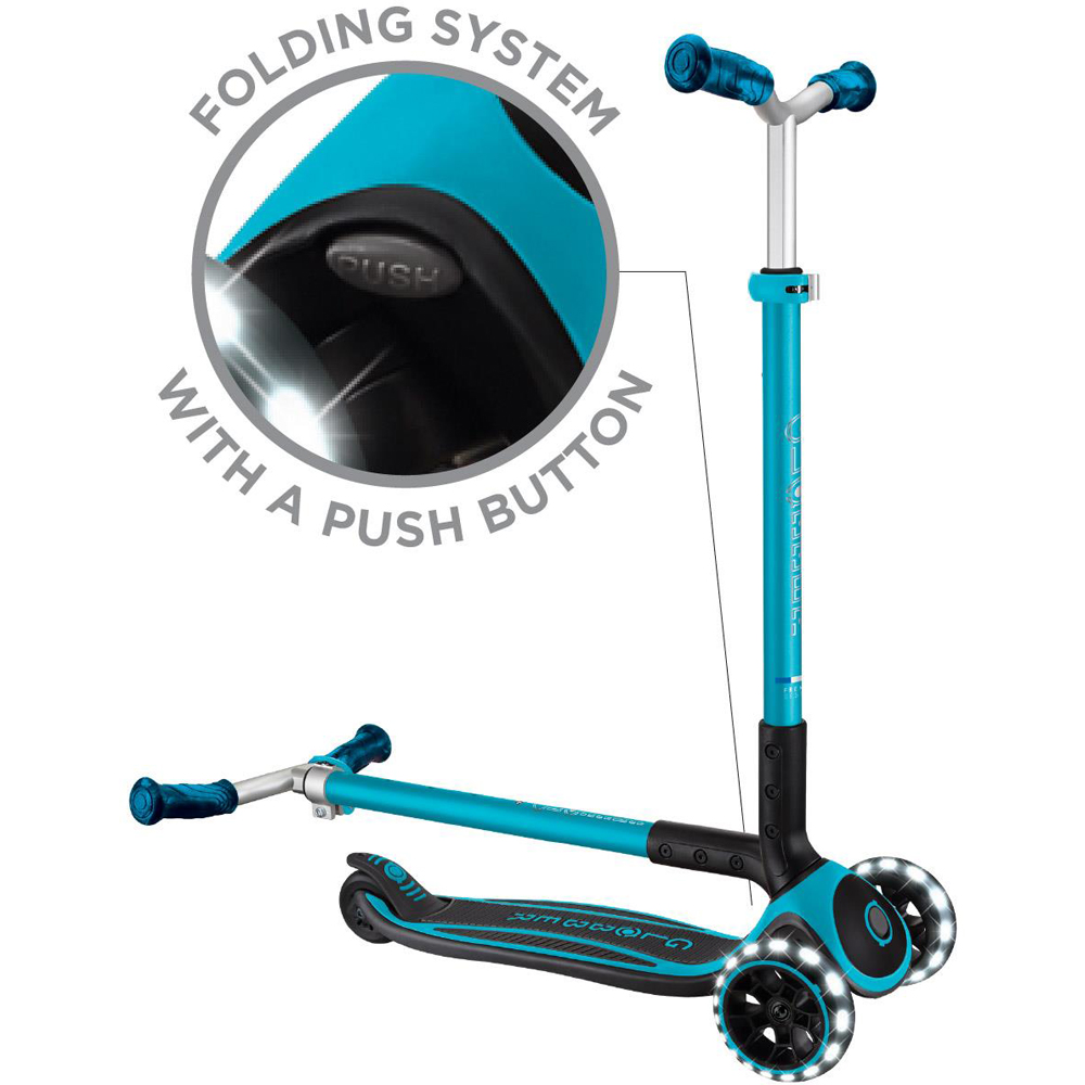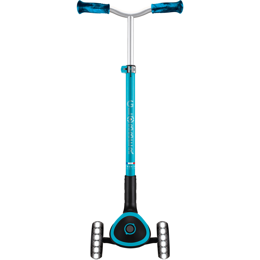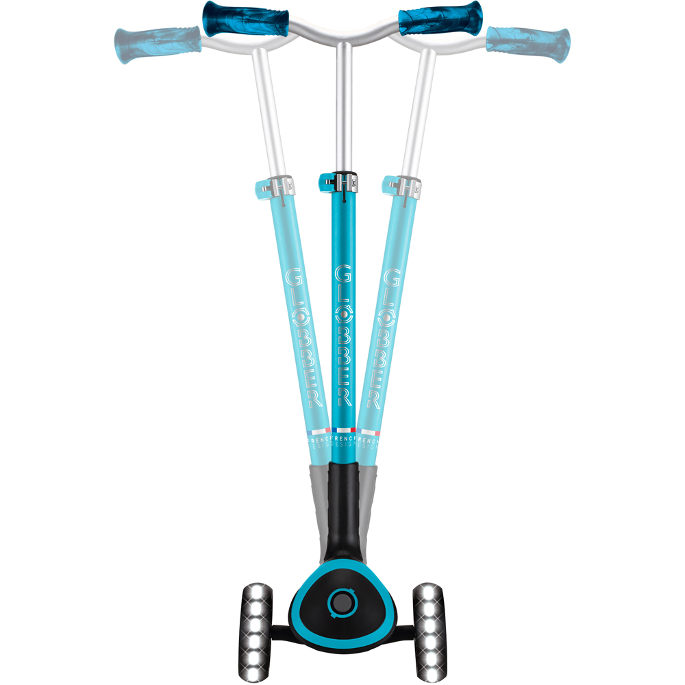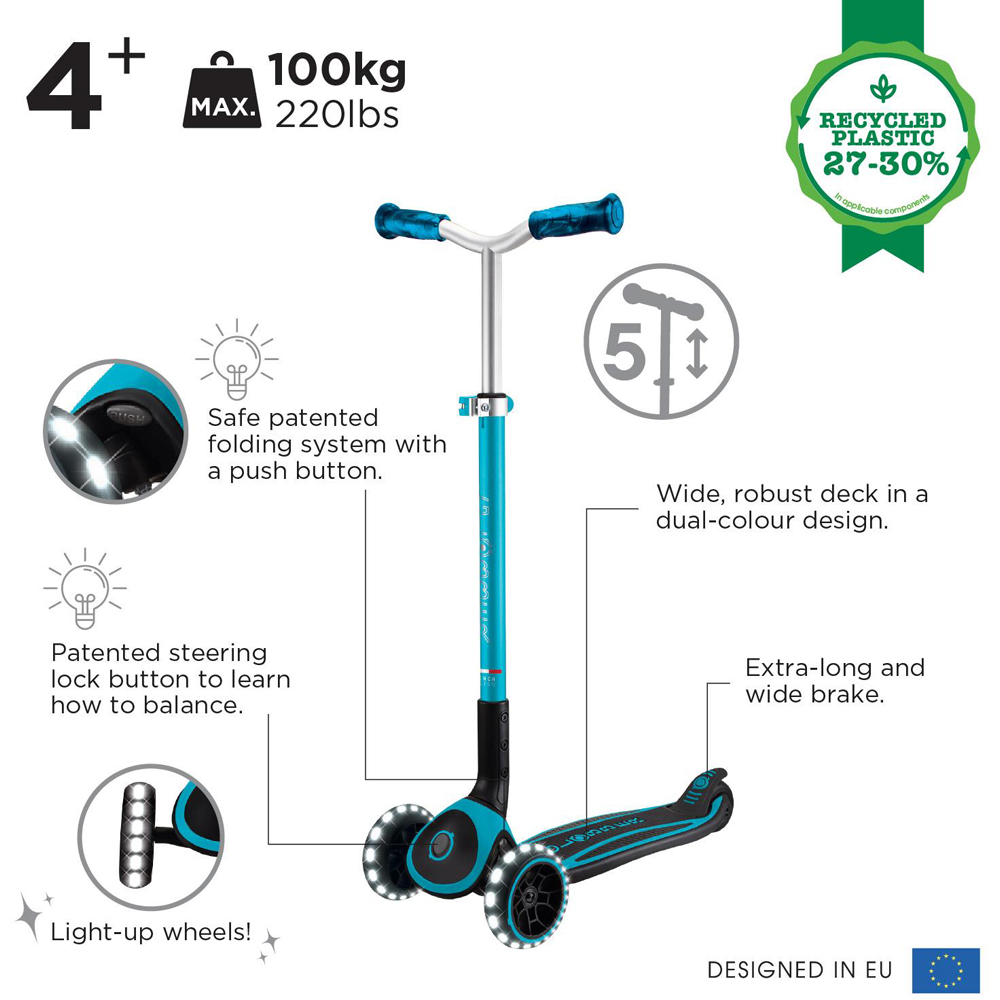 Spark excitement with every ride as this children's light up aqua scooter with adjustable height brings comfort and fun together, featuring a wide anti-slip deck with soft EVA foam for stability, battery-free LED wheels that flash brilliantly, and a patented folding system for easy transport. Kids can effortlessly adjust the handlebars to five different heights for a perfect fit, while the steering lock system ensures a safe and controlled scooting experience. Crafted with up to thirty percent recycled plastic, it's a foldable aqua kids scooter with LED wheels UK families will love and a safe aqua scooter for 5 year olds with lights Ireland parents can trust.