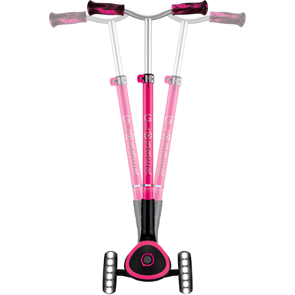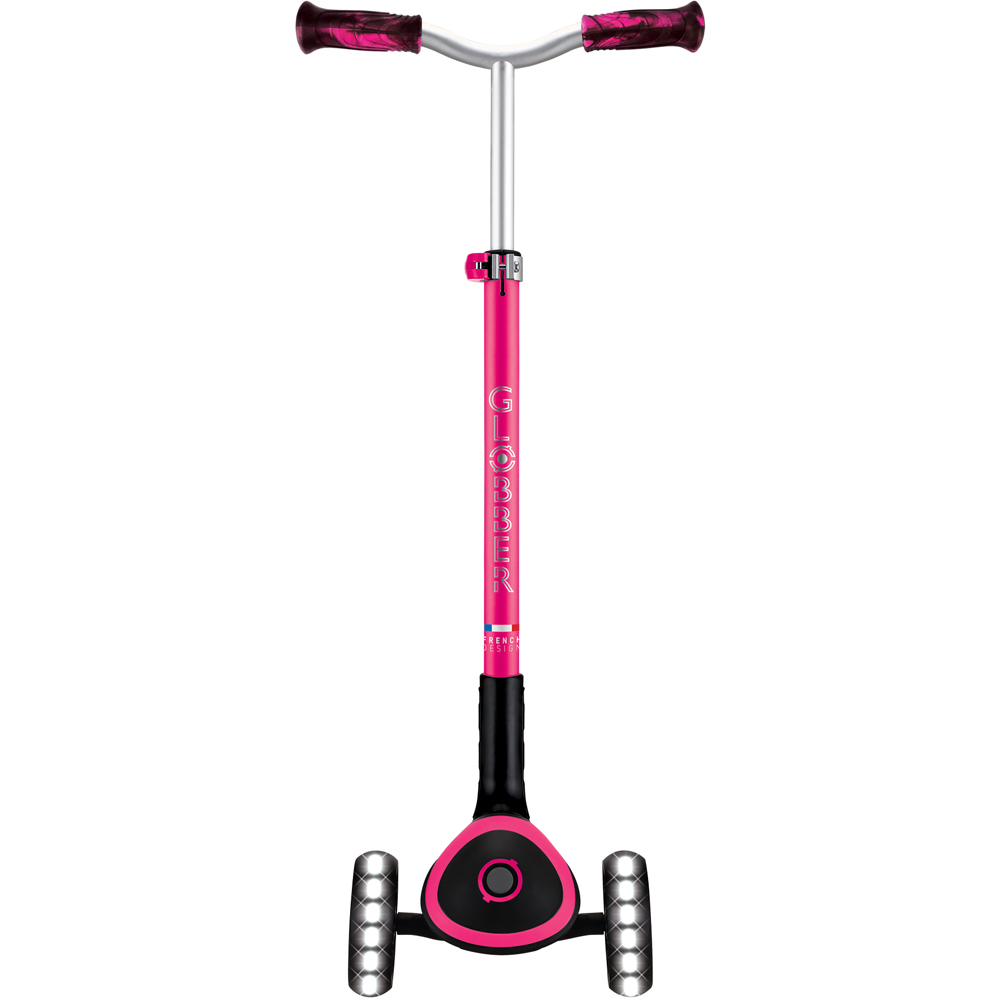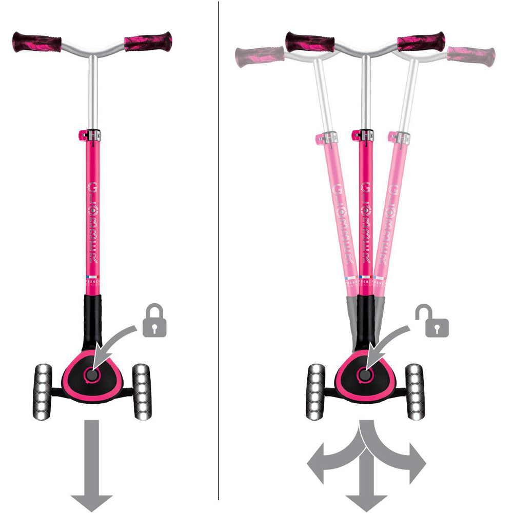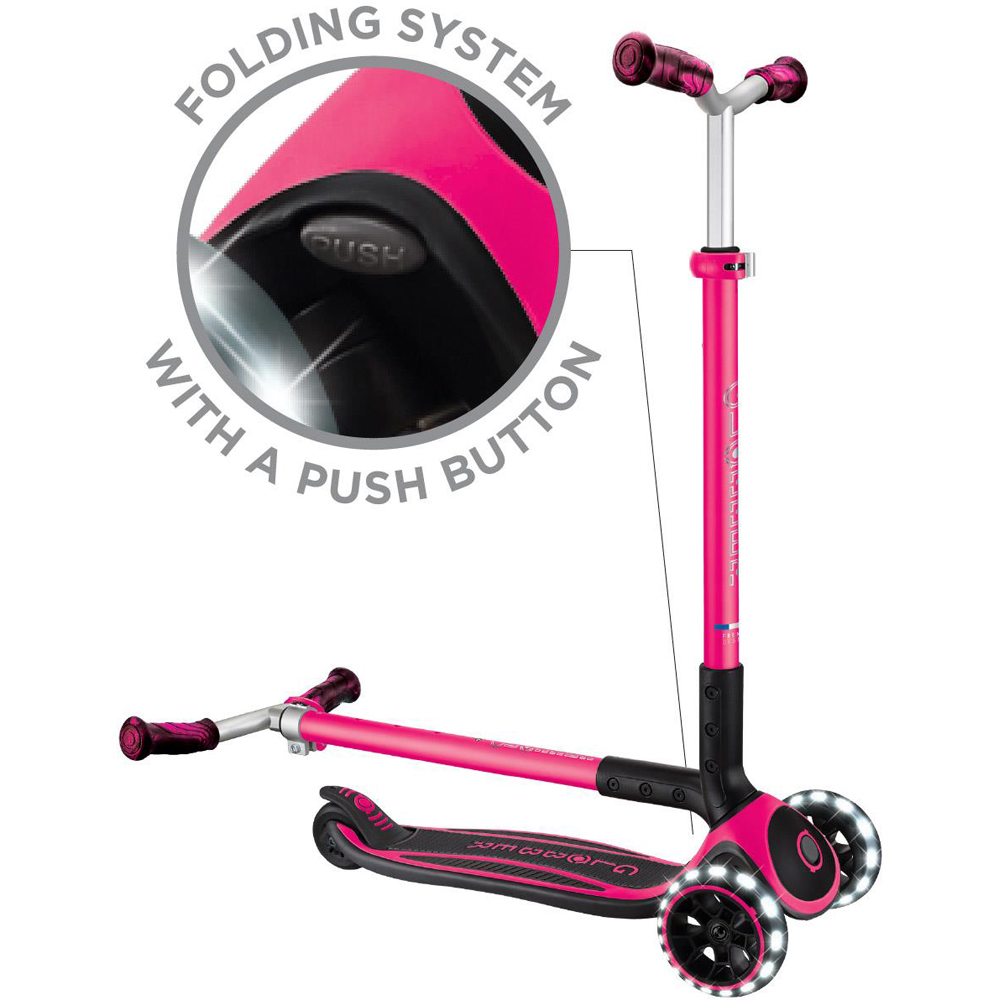 Turn every ride into a light show with a foldable kids scooter in fuchsia that lights up the way, offering a wide, anti-slip deck lined with soft EVA foam, adjustable handlebars for growing riders, and battery-free LED wheels for safe, illuminated scooting fun. Enjoy easy transport with a patented folding system and trolley mode, while the patented steering lock ensures confident first rides then unlocks for smooth lean-to-steer action. Crafted partly from Global Recycled Standard plastic, this adjustable height scooter supports up to 100kg and is perfect for children aged six and up who want a light up children’s scooter in pink that’s as fun as it is practical.
