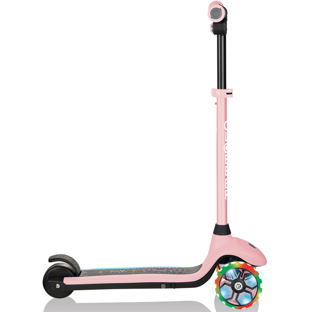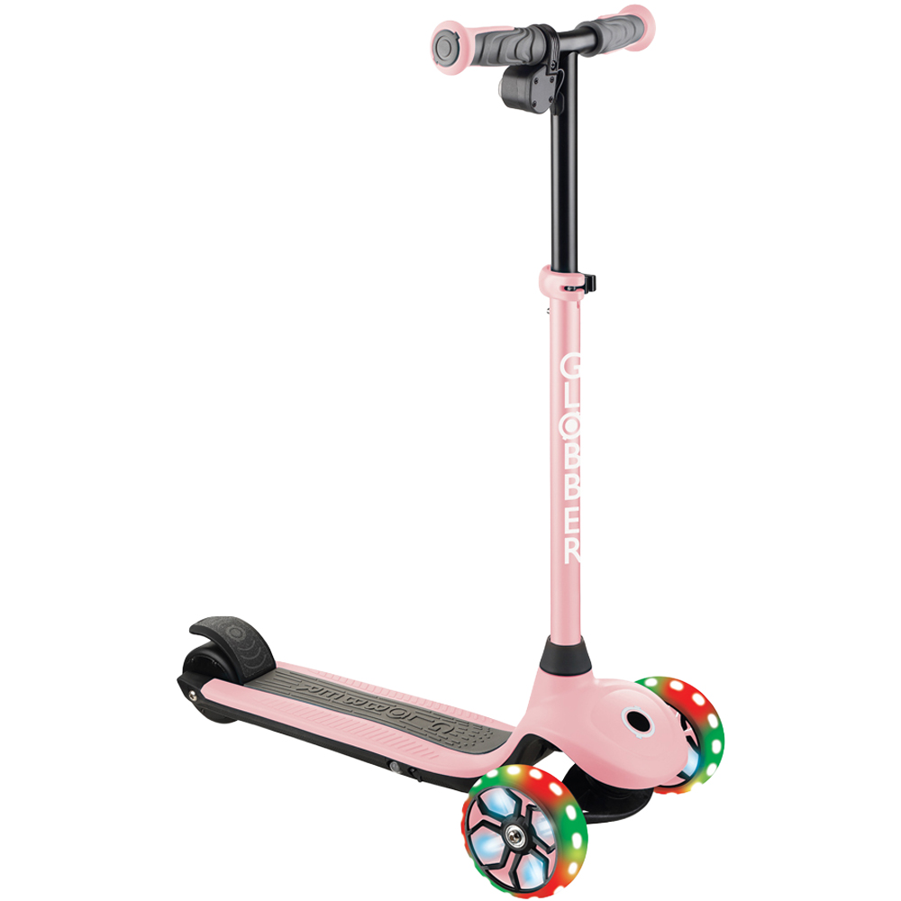 Spark excitement in every ride with a lightweight children’s electric scooter in pastel pink, designed for ages four and up and built for safe adventures. Featuring a powerful 80W brushless motor and a 14.4V lithium battery, this electric scooter for kids with adjustable handlebar pastel pink offers two speed modes and a push-button throttle so little hands stay secure on the T-bar. The three-wheel design and dual braking system, including E-ABS and a mechanical rear brake, help ensure your child can enjoy a smooth and safe journey. With an adjustable three-height T-bar, super-wide anti-slip deck and battery-free light-up wheels, every scoot brings comfort, safety and a splash of colour to playtime.