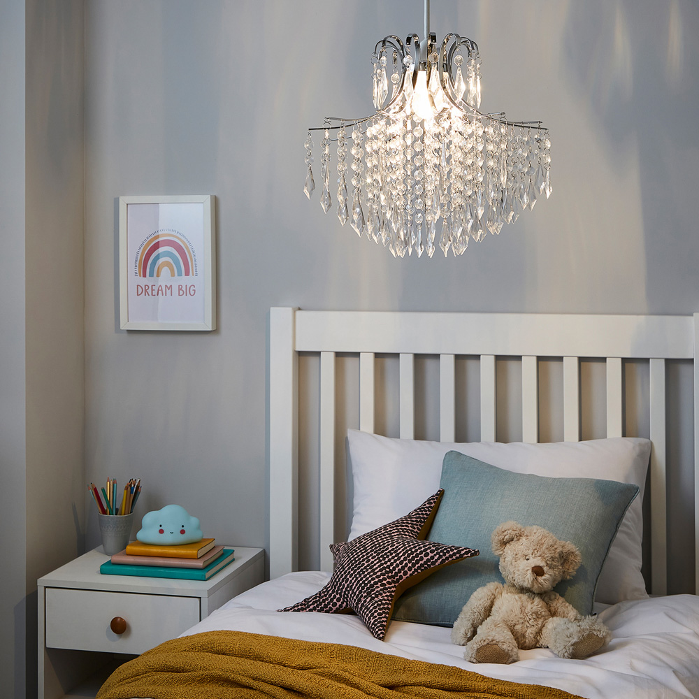 Create a dazzling centrepiece in your home with the GLOW WATERFALL Droplet Easyfit Clear Ceiling Light. Inspired by the elegance of cascading water, this stunning shade features delicate clear acrylic droplets that catch and reflect light beautifully, adding a touch of luxury and sophistication to any space. Whether in a bedroom, living room, or hallway, it brings a shimmering, elegant ambiance to your décor.