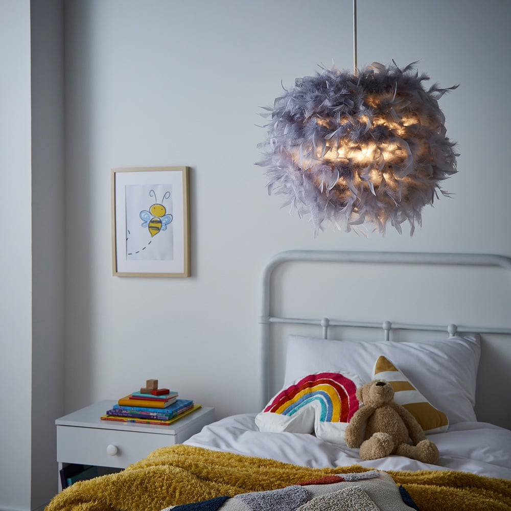 Bring a touch of softness and elegance to your space with the GLOW Grey Feathers Easyfit Shade. Designed with delicate, fluffy white feathers, this dreamy shade adds an ethereal charm to any room, creating a warm and inviting glow when lit. Perfect for bedrooms, dressing rooms, or cozy living spaces, it exudes effortless sophistication and style.