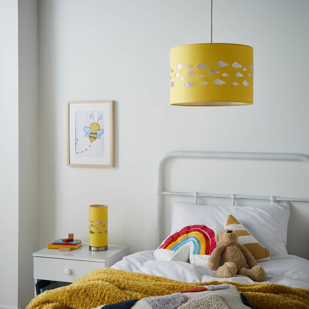 Create a warm and dreamy atmosphere with the GLOW CLOUDS LED Table Lamp in Ochre. Designed to bring a cozy glow to your space, this charming lamp features a soft ochre shade adorned with playful cloud cut-outs, casting beautiful patterns when illuminated.