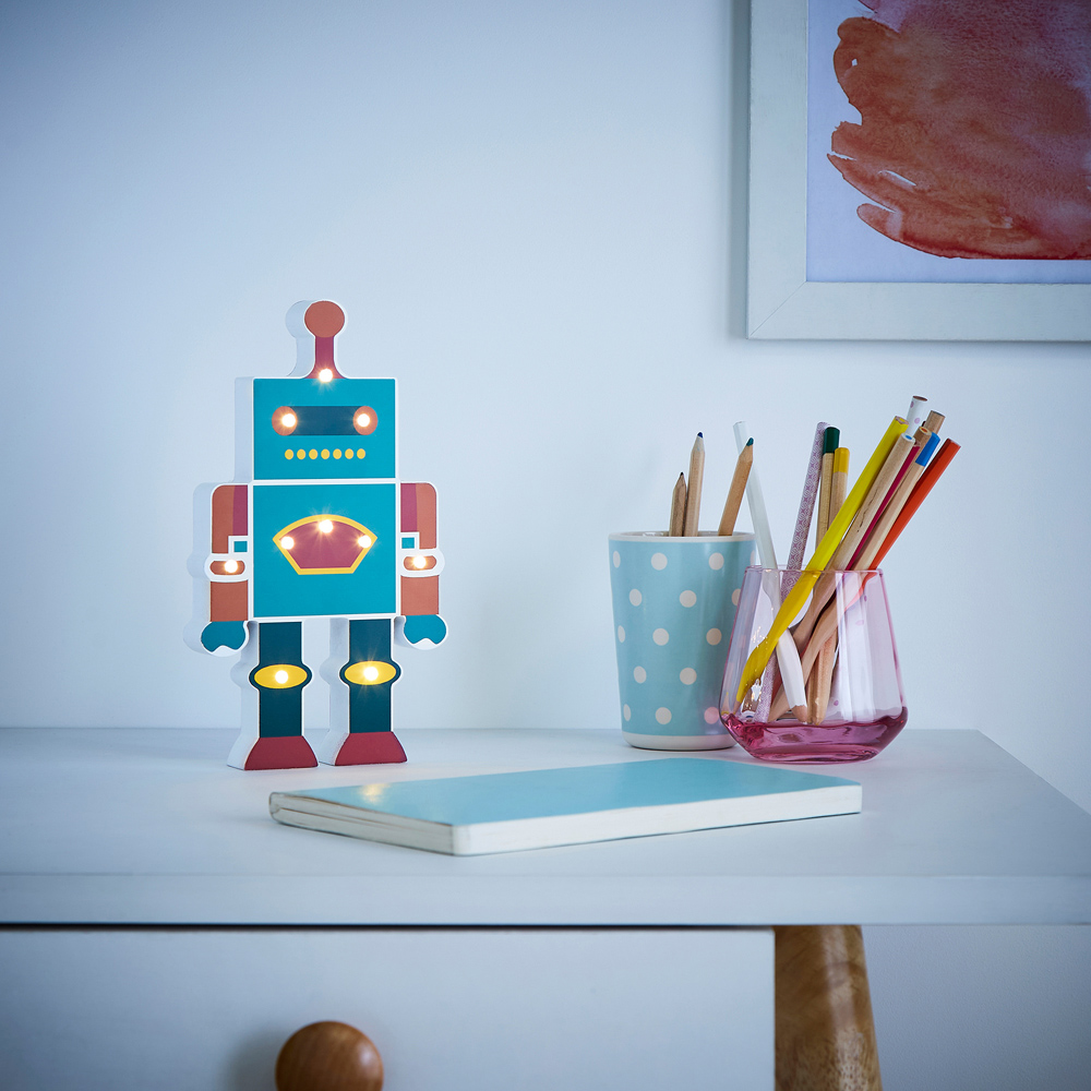 Add a futuristic touch to any room with the GLOW ROBOT LED Table Light! Designed in the shape of a playful robot, this fun and quirky light is perfect for young tech enthusiasts and imaginative minds. With its unique design and vibrant painted finish, this robot light adds both charm and character to bedrooms, playrooms, or any space in need of a little extra personality.