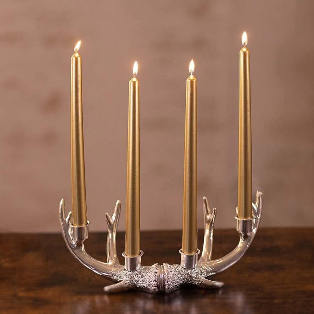 Bring warm light and festive magic into your home with this Christmas with this Marco Paul Silver Scented Taper Candles 4 Pack. These taper candles stand tall at 25cm, making them a captivating centrepiece for your Christmas table, mantel, or any special occasion. Their silver metallic finish adds a touch of glamour and sophistication to your decor. It is smokeless and fragrance-free, so you can use it in the presence of people with allergies.