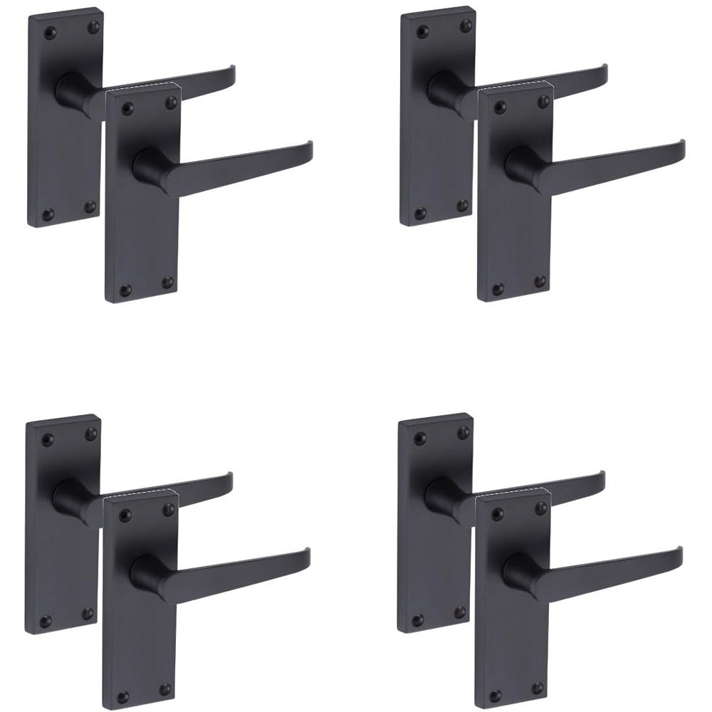Golden Grace Matt Black Victorian Straight Latch Door Handle Pair 120 x 40mm 4 Pack