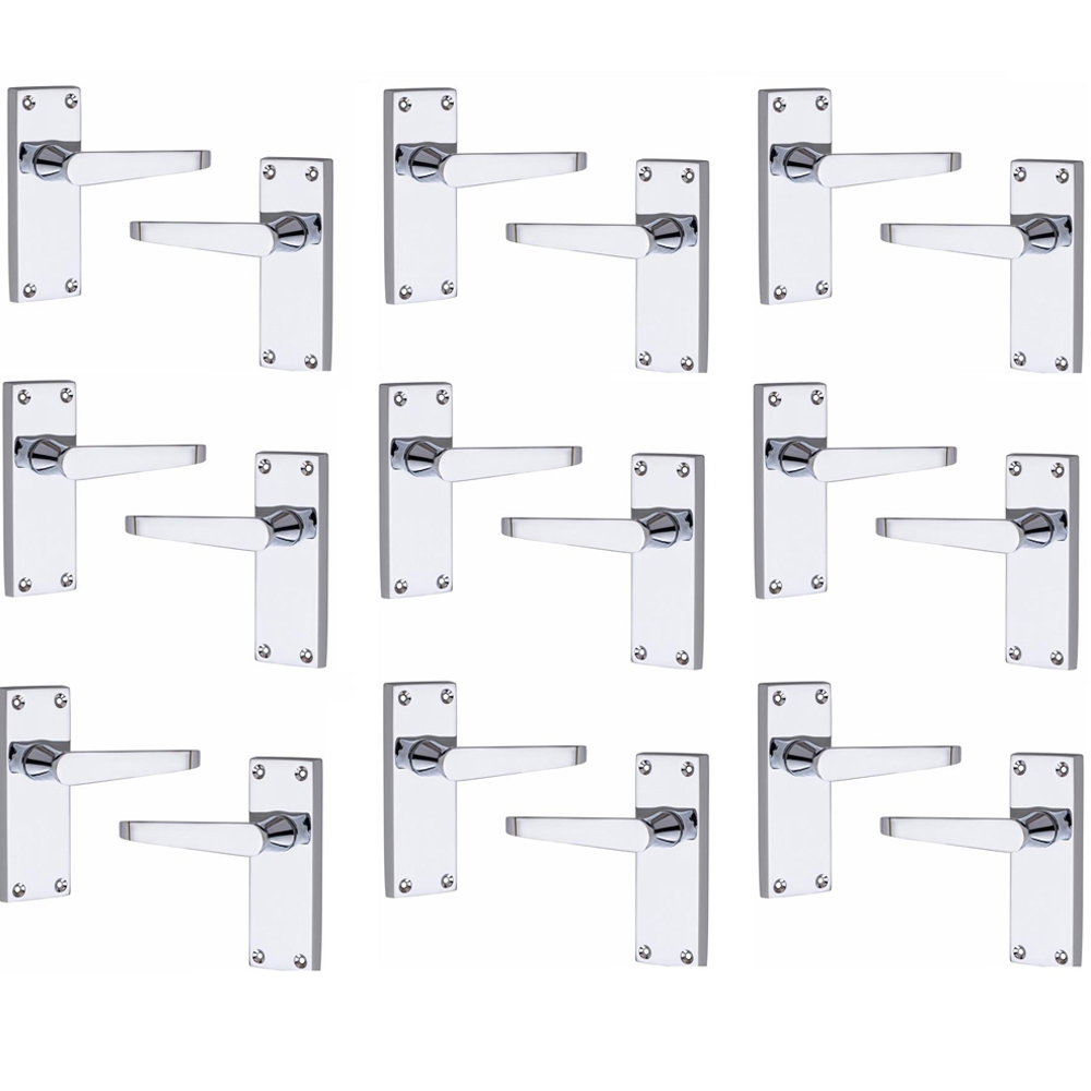 Golden Grace Victorian Straight Polished Chrome Lever Latch Handles Set 9 Pack