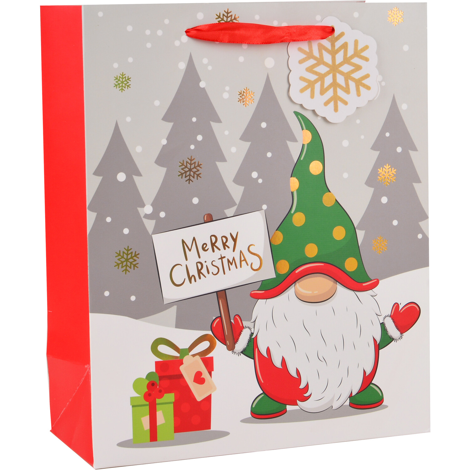 Delight your loved ones with this Gonk Gift Bag Large. Adorned with adorable gonk and festive patterns, this bag comes in an assortment of two styles to add a whimsical touch to your celebrations. Practical and stylish, the satin handles ensure easy carrying while the spacious interior accommodates a variety of presents.