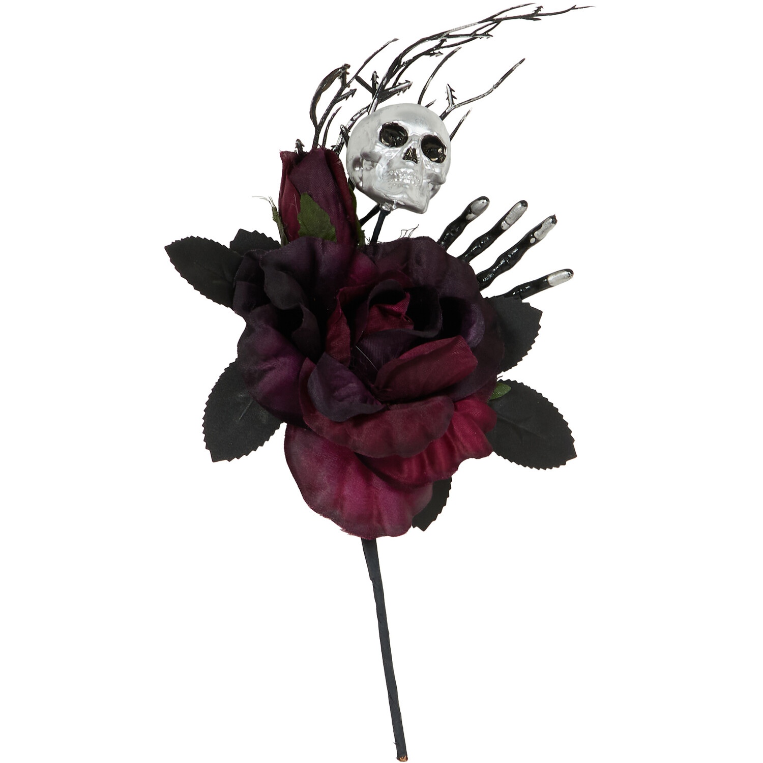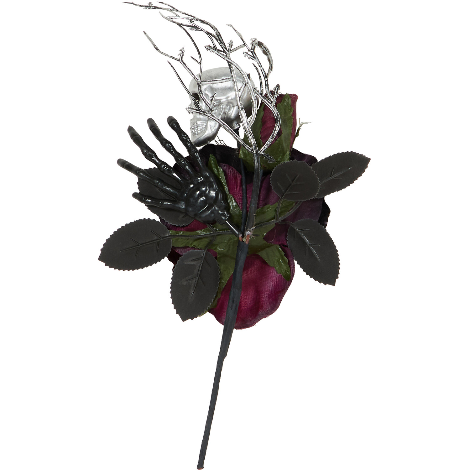 Transform your home into a haunted house using the Gothic Skull Rose Pick. Perfect Halloween decoration, this pick is designed with a dull red rose, a creepy skull, and other spooky details to give it an unsettling look. Add this pick to your vase with other decorations or use it to create a frightening wreath for your outdoor display and leave all the trick-or-treaters spooked.