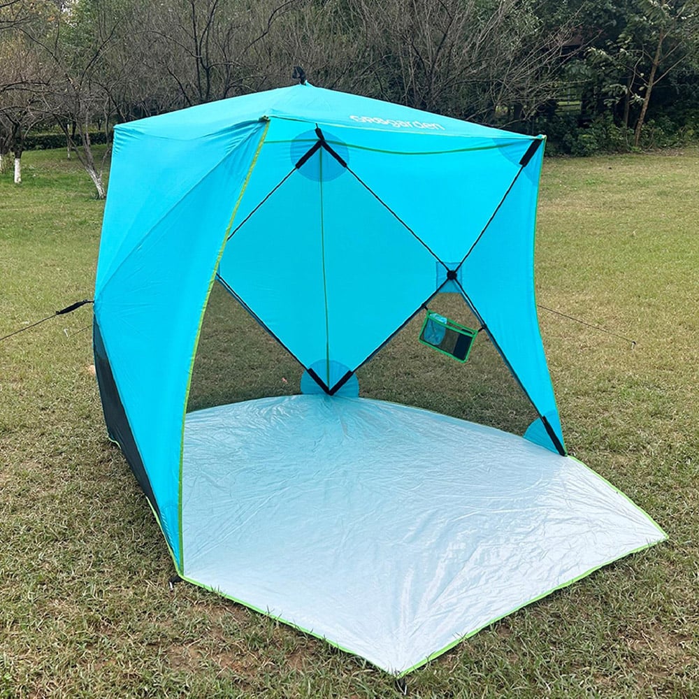 Gr8 Garden Blue Instant Portable Pop Up Tent Family Beach Shade Sun Protection Shelter Outdoor Camping Fishing Garden Hiking Festival Canopy 3-4 Person UPF50+ UV. The Gr8 Garden Pop Up Beach Shelter is a must-have for any trips to the beach. It's also great for in the garden, camping trips, outdoor events, fishing trips and even more! A great addition to any outdoor adventure! The Pop Up Sun Shelter provides instant protection from the heat and UV rays from the sun and can provide all-day shade when needed. The simple, super speedy pop-up assembly is great when you're at the beach and is easy to fold back into the handy carry case when it's time to head for home. Portable Pop UP Beach Shade Sun Shelter Tent UPF50+ UV, Size: 200 x 140 x 160cm, Material: Polyester, Fiberglass, Recommended: Beach, Camping, Hiking, Outdoor Activities, Colour: Blue, The size provides shade for up to 3-4 family members or friends for a more enjoyable and relaxed outdoor experience. Stay cool with the 4-sided ventilation design featuring 3 large mesh windows that ensure a constant, refreshing breeze and prevent the tent from getting stuffy. Roll the windows up for privacy or roll them down for maximum ventilation. Pop-up beach tent that can be set up in seconds without assembly. You can enjoy the happy time brought by the tent without worrying about the complicated steps of opening and storing.