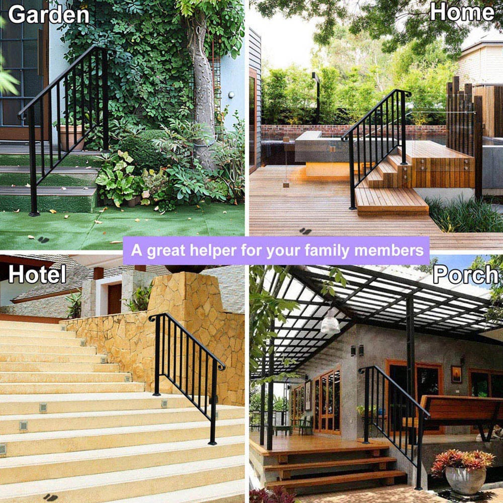 Ensure safety and stability with the Gr8 Garden Black Steel 3 Steps Garden Stairs Grab Rail. This black metal mobility handrail is designed to provide extra security for the elderly, children, pregnant women, disabled family members, and those recovering from surgery. It can be easily installed on concrete, brick, and wood steps, making it ideal for porches, balconies, gardens, residential buildings, hotels, garages, and more. Perfect for areas where wall attachment is not possible, this handrail fits three steps and measures 152 x 102 x 37 cm. Constructed from durable and rustproof steel, it offers reliable support and peace of mind for all users.