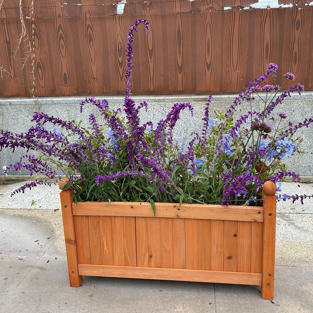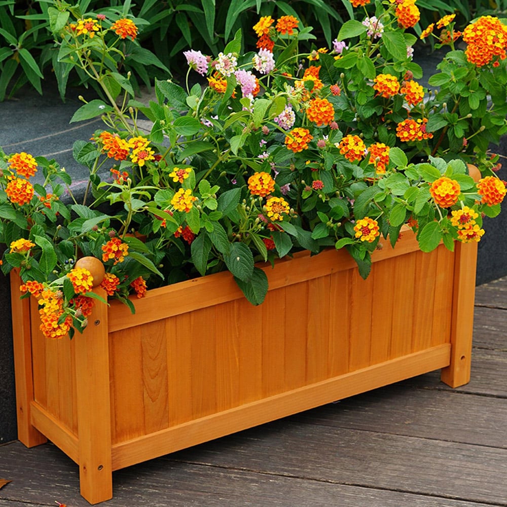 Gr8 Garden Rectangular Brown Wooden Rectangular Planter Display Outdoor Flower Window Box Ornamental Basket Plant Pot Raised Bed Trough. This classic design will make the perfect home for your beautiful plant life. From shrubs to flowers, herbs to trees, this sturdy planter will give a contemporary yet country style feel to your garden. The design will look gorgeous surrounding entrances and arches. The spacious design will house all kinds of plant life thanks to the deep build. The planter feet keep growth elevated from cold floors. The raised construction also helps to maintain your planter and ensure its long life. Brown Wooden Rectangular Planter, Size: L 60 x D 20 x H 34 cm, Material: Fir Wood, Colour: Brown, Drainage Hole, Weather Resistant, UV Resistant, These planters are easy to assemble, seamlessly transitioning into a charming addition to your garden. Crafted from high-quality wood with a natural finish, they're perfect for bedding plants and herbs, ensuring both convenience and durability.