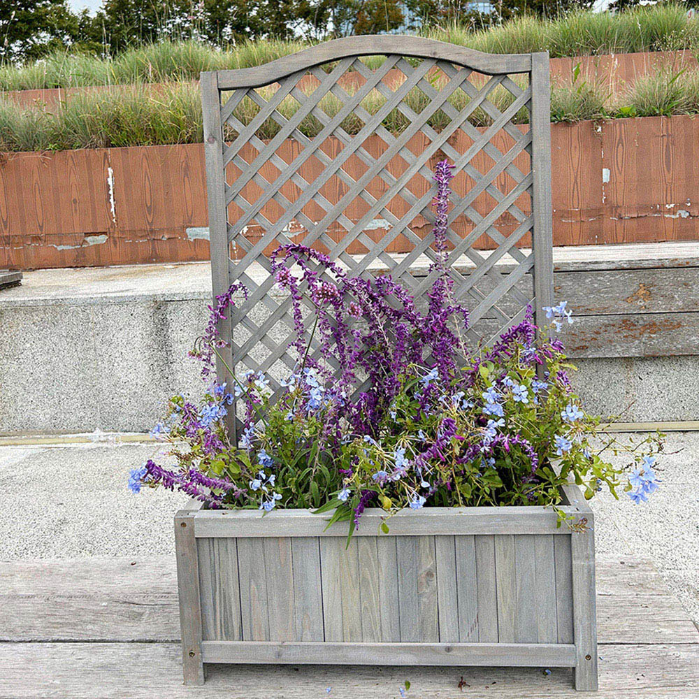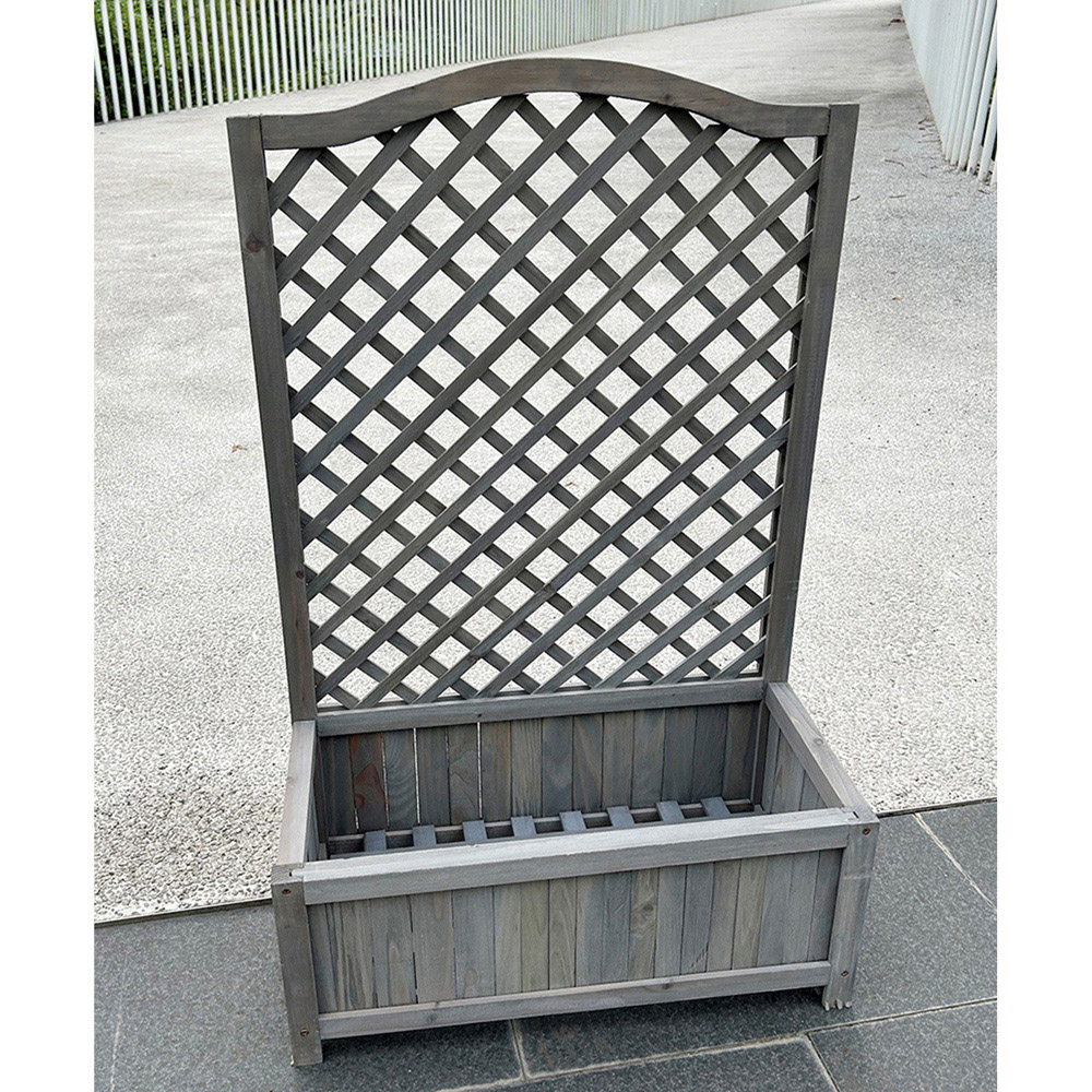 This Gr8 Garden Grey Wooden Lattice Planter Lattice with Trellis is ideal for housing a mixture of plants and flowers and also features an attractive lattice back for climbers. These planters are perfect for any garden. Overall Size: 60 x 23 x 100 cm, Plant Pot size: 60 x 23 x 23 cm approx., Material: Fir wood, Made of 100% solid wood, which is known for its strength and dimensional stability as well as its natural resistance to rot and pests, this flower shelf can built outdoors to last through the seasons with proper care.