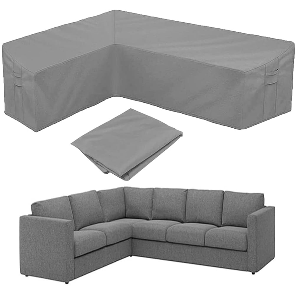 Gr8 Garden Outdoor Waterproof Furniture Corner Cover Rattan L Shape Sofa Protector Premium Protection. prolong the longevity of your garden furniture and accessories with our sophisticated range of easy-to-fit covers which offer heavy-duty protection against the elements. whatever the weather, this cover prevents damage being caused to your L-shaped outdoor sofa by wind, rain, frost, heat, UV rays, dirt, dust and more. Made from strong 600D polyester in slate grey with water-resistant PVC lining for effective, long-lasting protection. EASY TO FIT – fastening buckles and elastic drawstrings offer the flexibility needed to slide the cover on and off with ease, without having to settle for a looser, less reliable fit. L Shape Sofa 220x298x75x76cm, Made from strong 600D polyester water-resistant PVC lining, Dimensions: (D)220cm x (L)298cm x (H)75cm x (W)76cm, Fastening buckles and elastic drawstrings offer the flexibility needed to slide the cover on and off with ease, without having to settle for a looser, less reliable fit