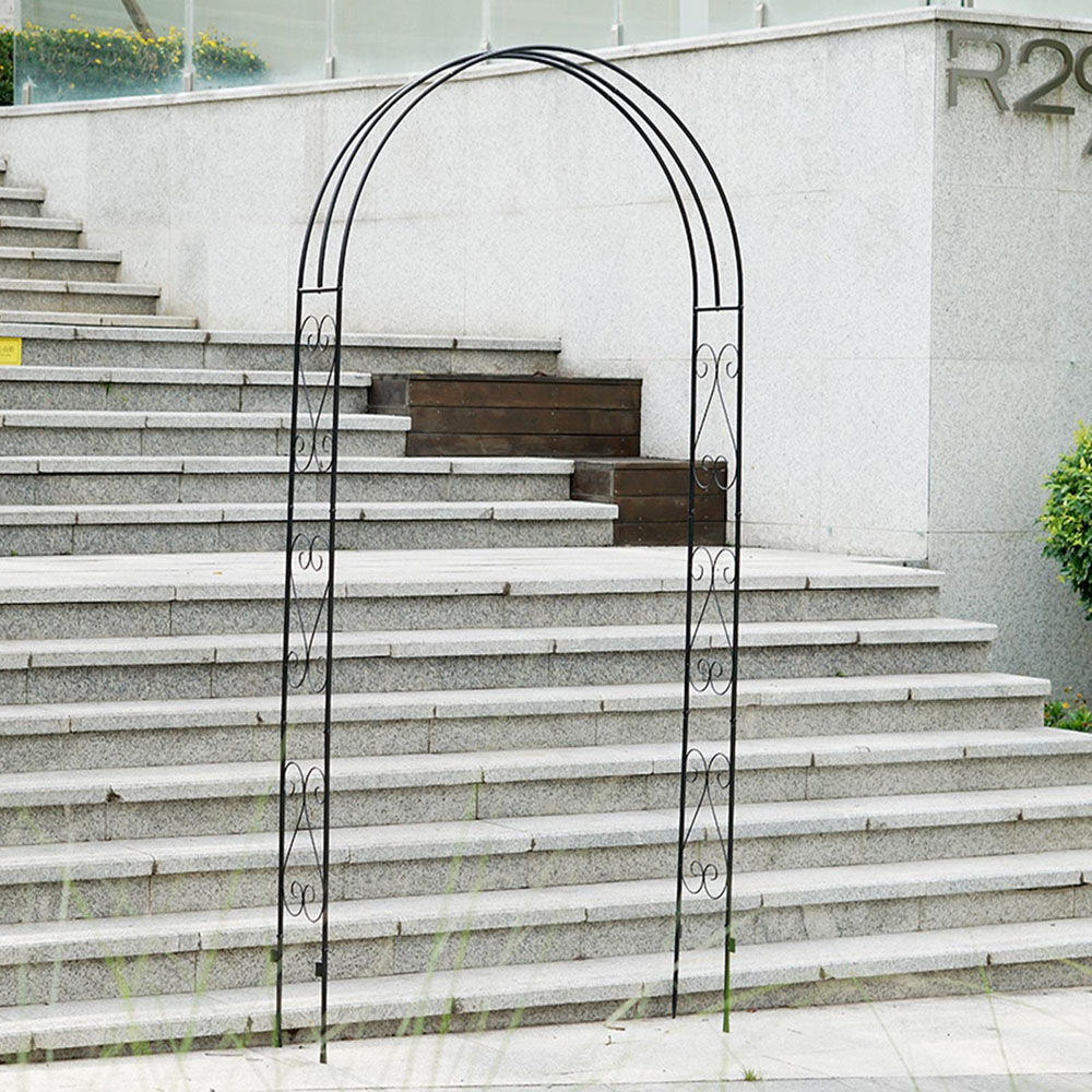 Gr8 Garden Decorative Curly Design Metal Heavy Duty Rose Arch Frame Archway Path Support for Climbing Tall Ivy Plant Flower Trellis. Free standing Garden Arch. Ideal for creating a stylish feature in your garden. Provides support of climbing plants. Legs insert into ground for added stability. Powder coated metal construction. Metal Garden Arbor Arch Steel Frame Garden Arch for Climbing Plants, Size: 240X120X25CM, Tube: 13x0.6mm, Powder Coated Steel Framed Garden Arch for a long life .2.4m high in the centre. GARDEN ARBOR PERGOLA: Enhance your landscape with a beautiful garden arbour arch, perfect for climbing plants or a stunning garden feature. VERSATILE & DÉCORATIVE :Train climbing roses, hydrangeas, passion flowers, clematis, morning glories, and more .Versatile for wedding arch decorations, yard decorations, grapevine garland, grape trellis, fairy lights, fabrics, flowers, greenery, etc